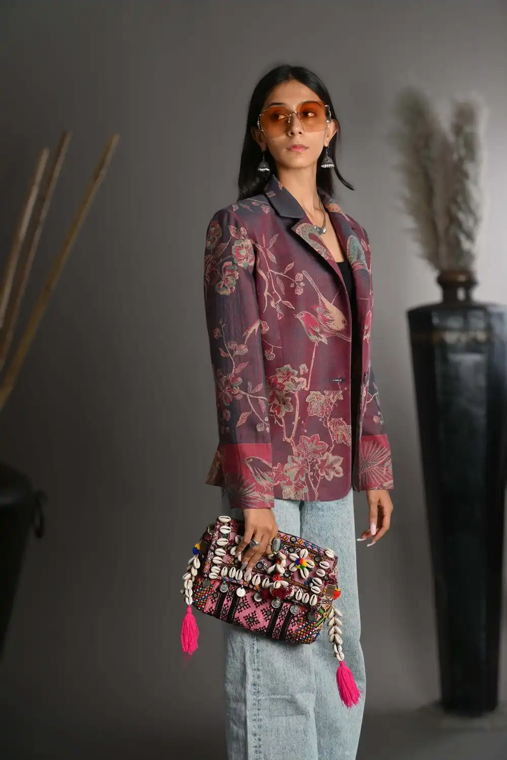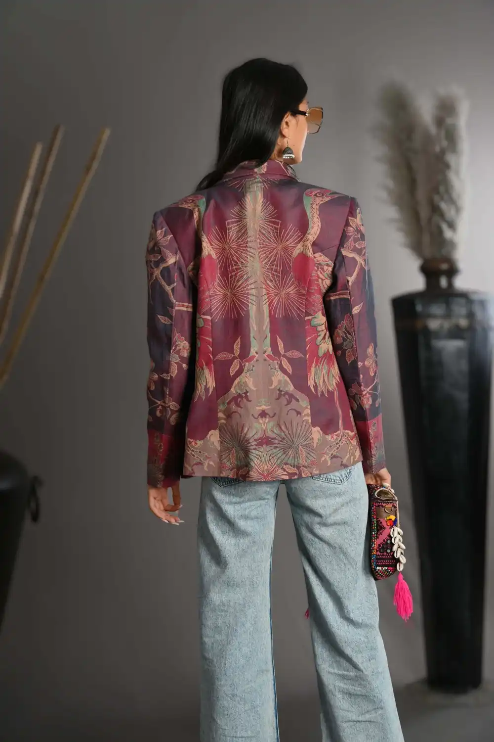 A Cashmere Bamboo Silk is our most versatile Short Blazer, A regular length with frog style collar blazer. This jacket is easy to wear, it can be worn with jeans, dresses and skirts for both men and women. Feel Good in our clothing, knowing that we provide a positive social impact on the economy in India. Our most popular Designer cashmere bamboo silk blazer, best worn open, This bright color’s and Floral jacket can be worn smart or casually; for a wedding guest outfit, the theater or a day out with friends. Looks just as good over one of silk dresses or jeans, silk, trouser for women’s. Thanks !