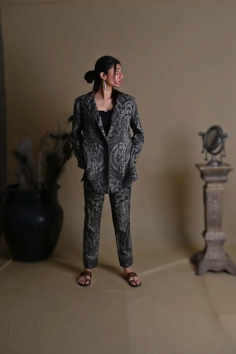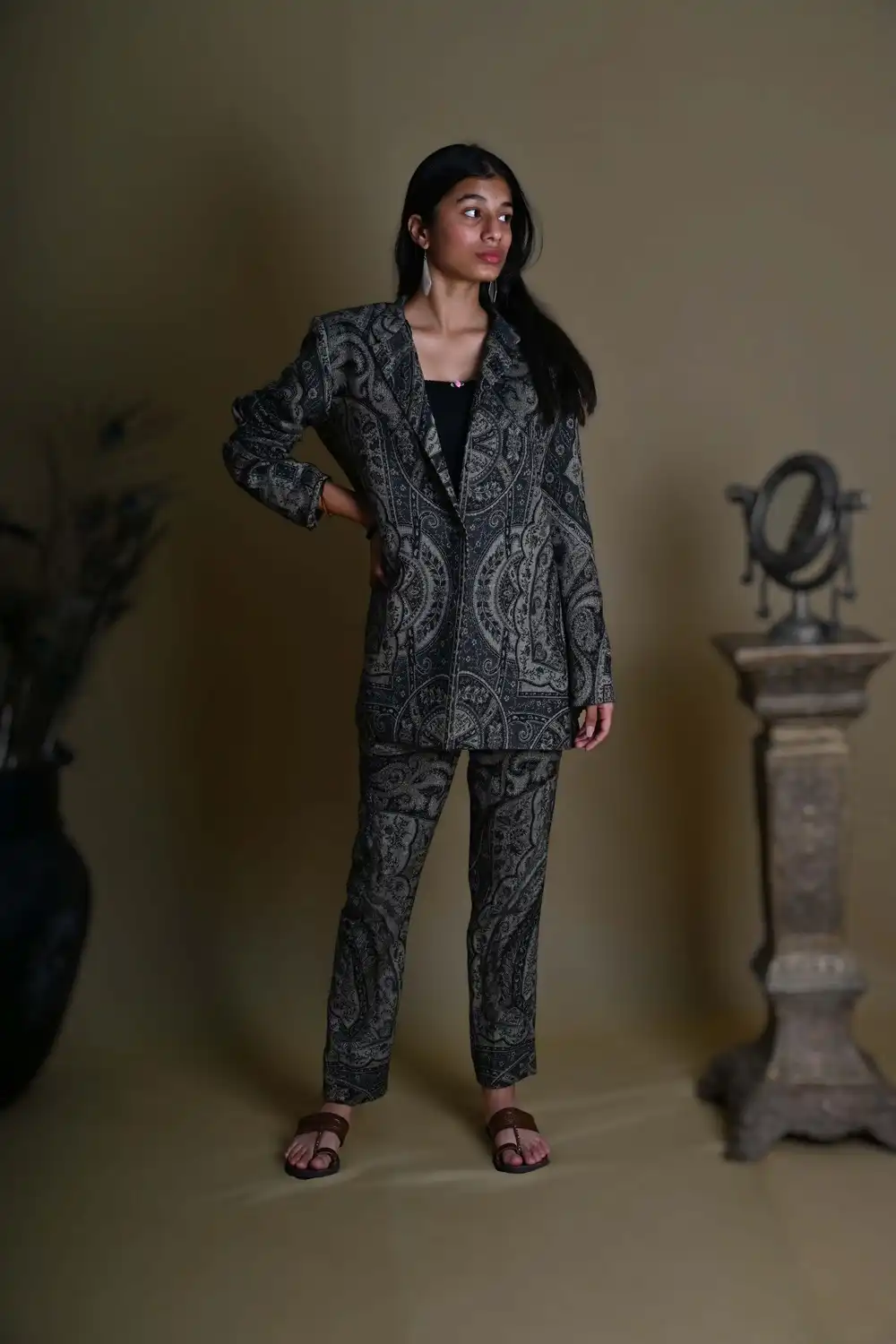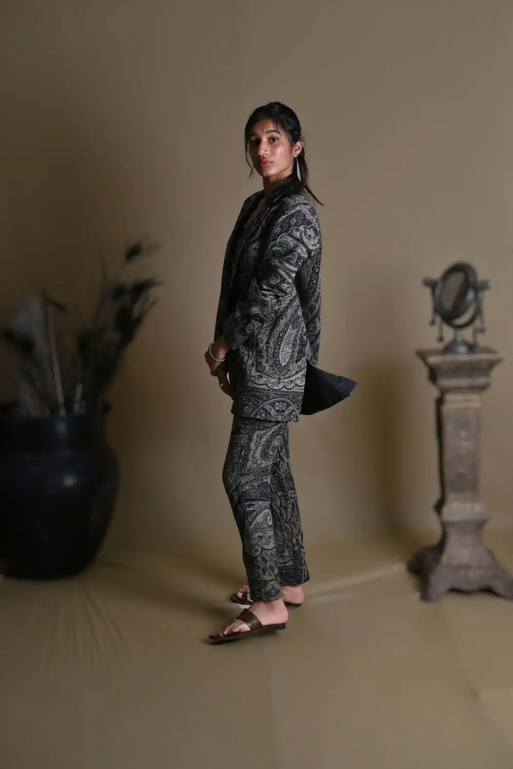 A Cashmere Bamboo Silk is our most versatile Short Blazer, A regular length with frog style collar blazer. This jacket is easy to wear, it can be worn with jeans, dresses and skirts for both men and women.