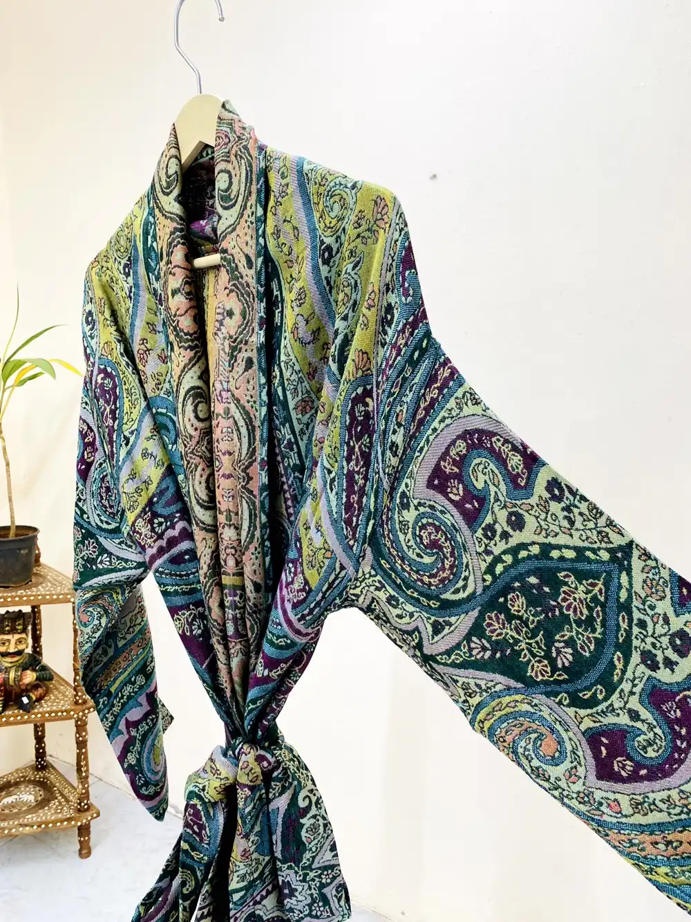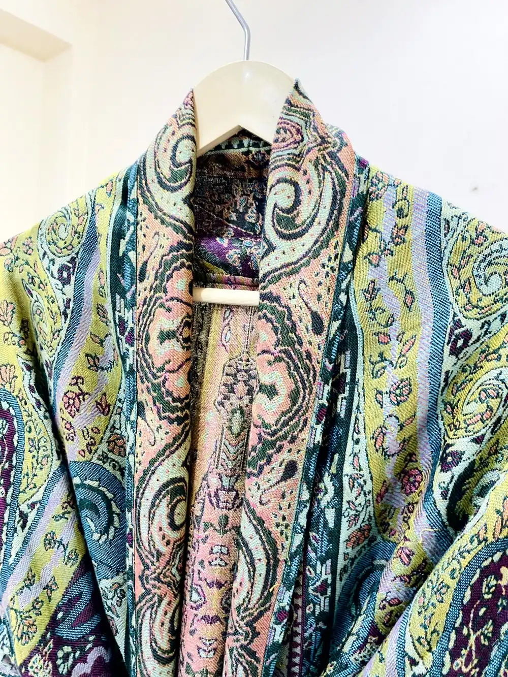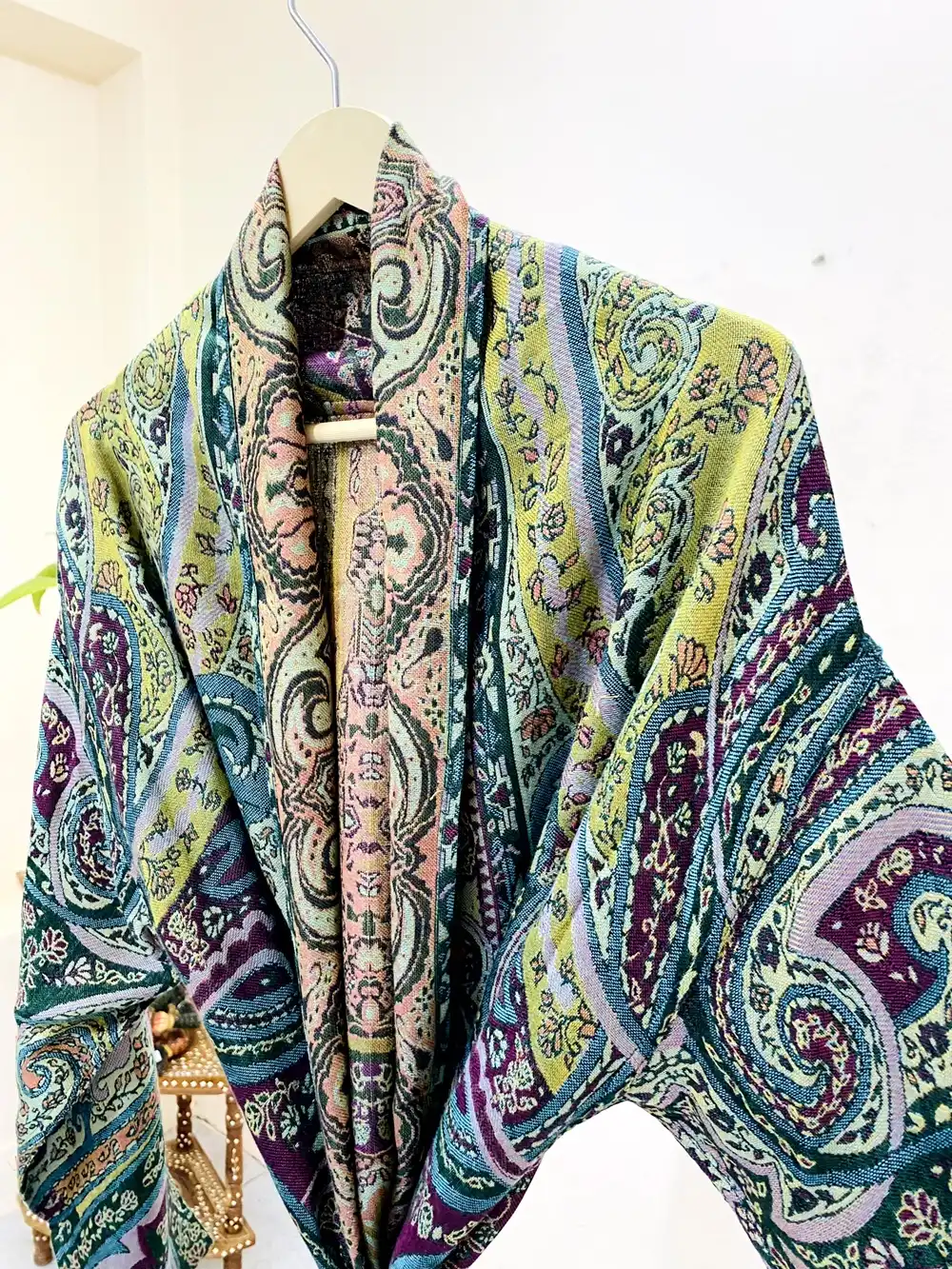 ” Reversible Dressing kaftan-shirt ” Silk Kimono Robe, Kimono Jacket, Kimono Cardigan, Boho Kimono, Kaftan, Dressing Gown, Robe for Women, House Coat, Nightdress, Beach Cover Up, Women’s Clothing, Bohemian Clothing, Kimono, Gift for Her The bamboo and silk Kimono kaftan-shirt is our most versatile coat, it can be worn with jeans, dresses and skirts. A paisley traditional design in bamboo silk Kaftan Shirt. A regular length with a simple, flattering cut which suits plus size. This dress is easy to wear, with no buttons and you just wear it ready to go. The perfect compliment to a wedding outfit, party wear dress, Women match with Skirt or a Denim jeans or Palazzo etc. *Note :- Color will be same, design may differ due to running fabric. Thank You!