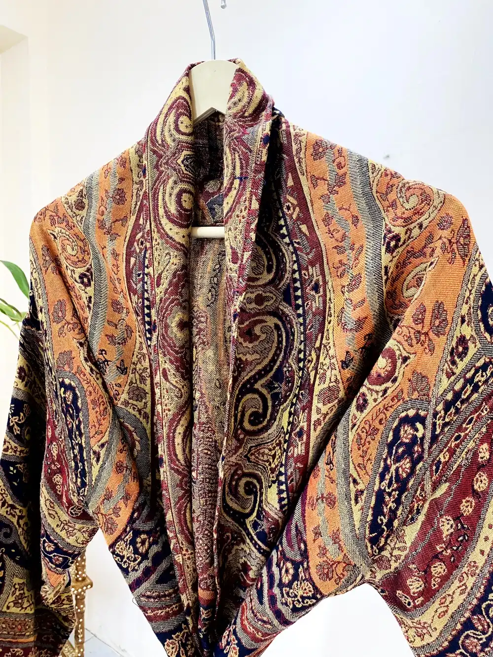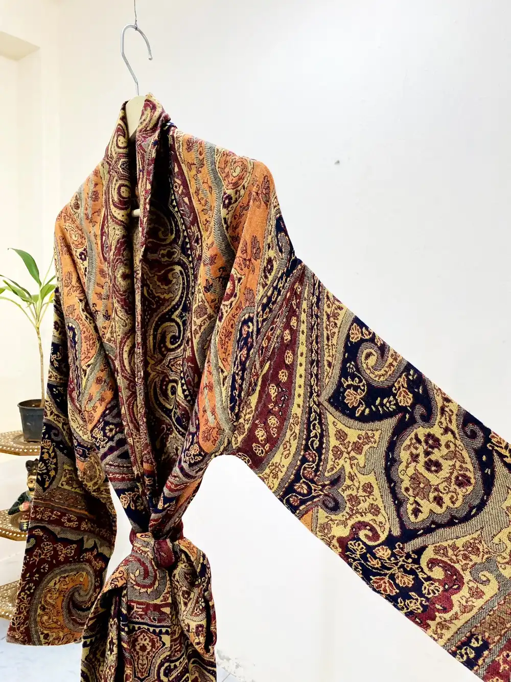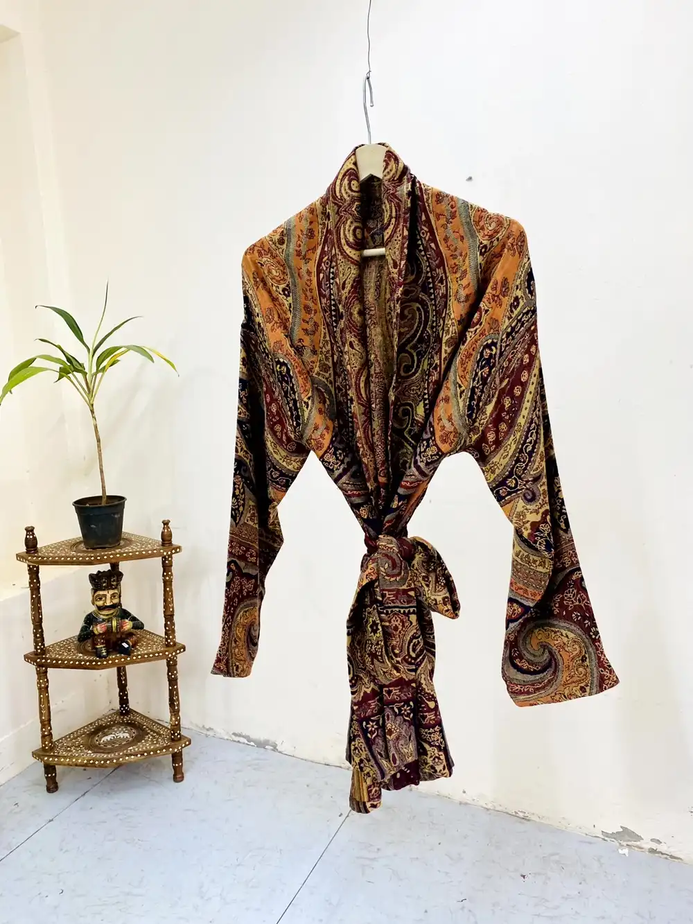 ” Reversible Dressing kaftan-shirt ” Silk Kimono Robe, Kimono Jacket, Kimono Cardigan, Boho Kimono, Kaftan, Dressing Gown, Robe for Women, House Coat, Nightdress, Beach Cover Up, Women’s Clothing, Bohemian Clothing, Kimono, Gift for Her The bamboo and silk Kimono kaftan-shirt is our most versatile coat, it can be worn with jeans, dresses and skirts. A paisley traditional design in bamboo silk Kaftan Shirt. A regular length with a simple, flattering cut which suits plus size. This dress is easy to wear, with no buttons and you just wear it ready to go. The perfect compliment to a wedding outfit, party wear dress, Women match with Skirt or a Denim jeans or Palazzo etc. *Note :- Color will be same, design may differ due to running fabric. Thank You!