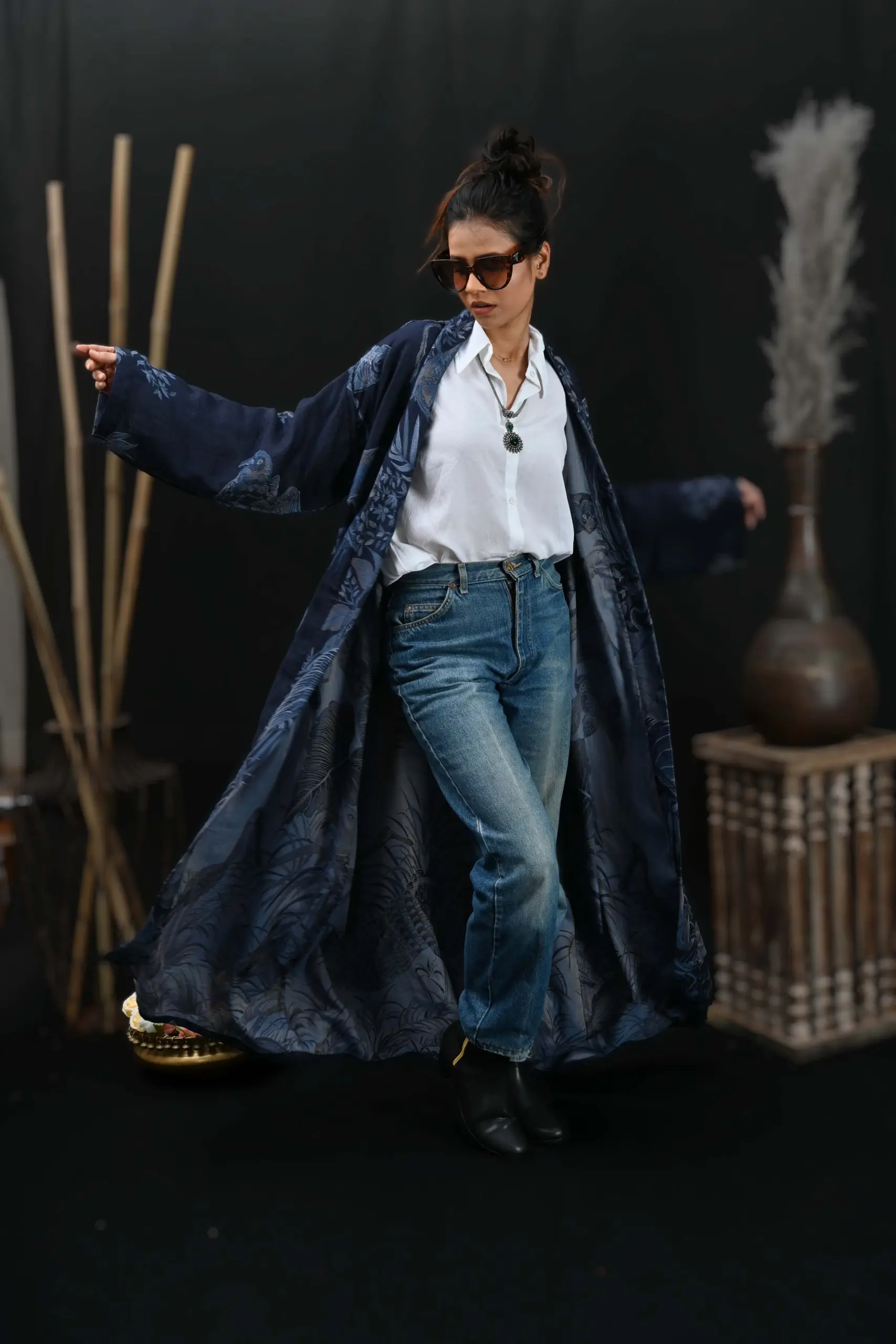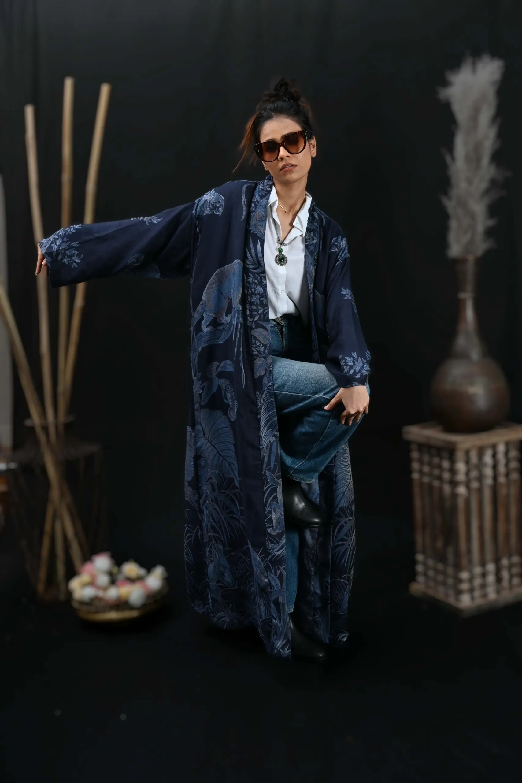Animal Design Navy Blue Color Reversible Robe