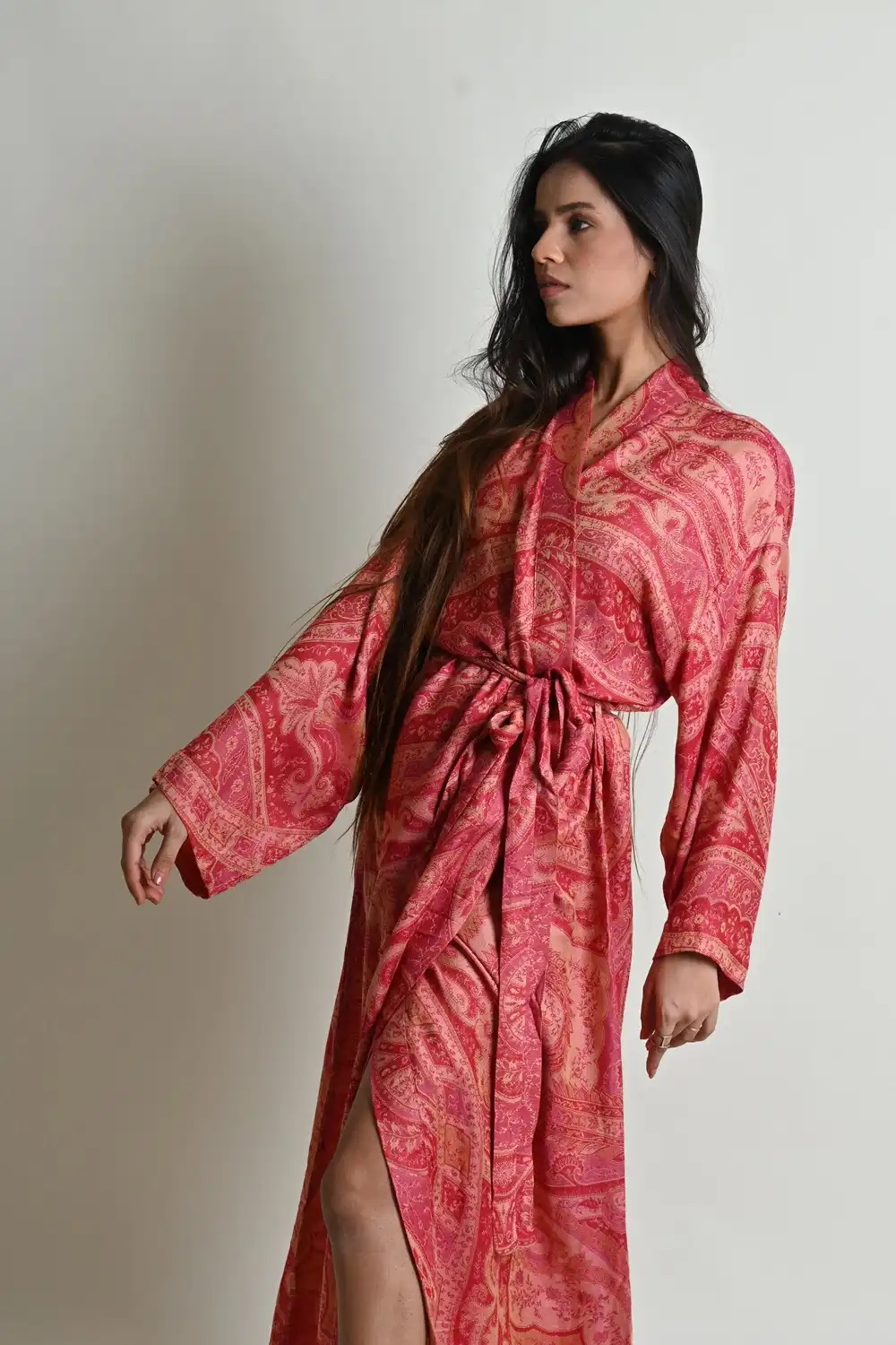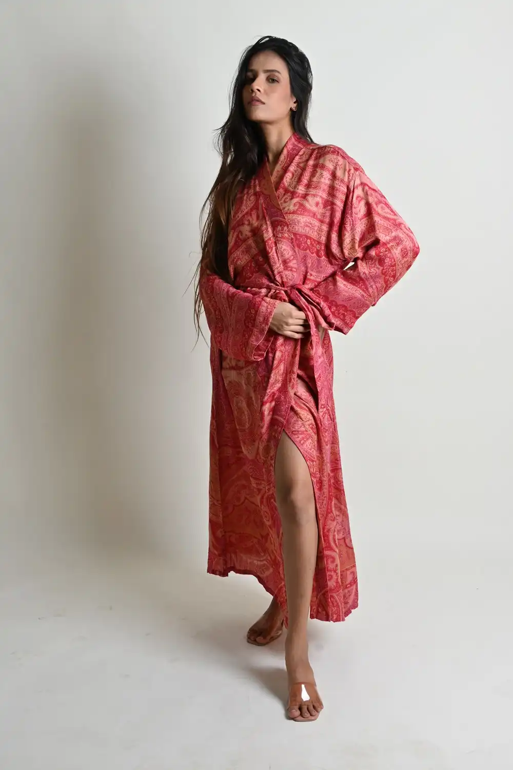 This luxury silk with wool thin kimono dressing robe for men will make you feel like a king! simply want to chill out at home this silk with wool house coat, nothing beats the feeling of wrapping yourself in a luxurious silk kimono robe. The soft-to-the-touch silk lounge-wear feels like a dream against the skin and can instantly upgrade your leisure time and make you look like royalty with no effort at all. And the fact that the material is temp-regulating, naturally hypo-allergenic, ultra-cooling, and offers a slew of preventative aging benefits? That makes the robes an even more elite choice for a cozy night in. Here, shop the best silk dressing robe for every style, lace-trimmed kimonos to long elegant wraps to paisley printed with this knitted reversible robe.