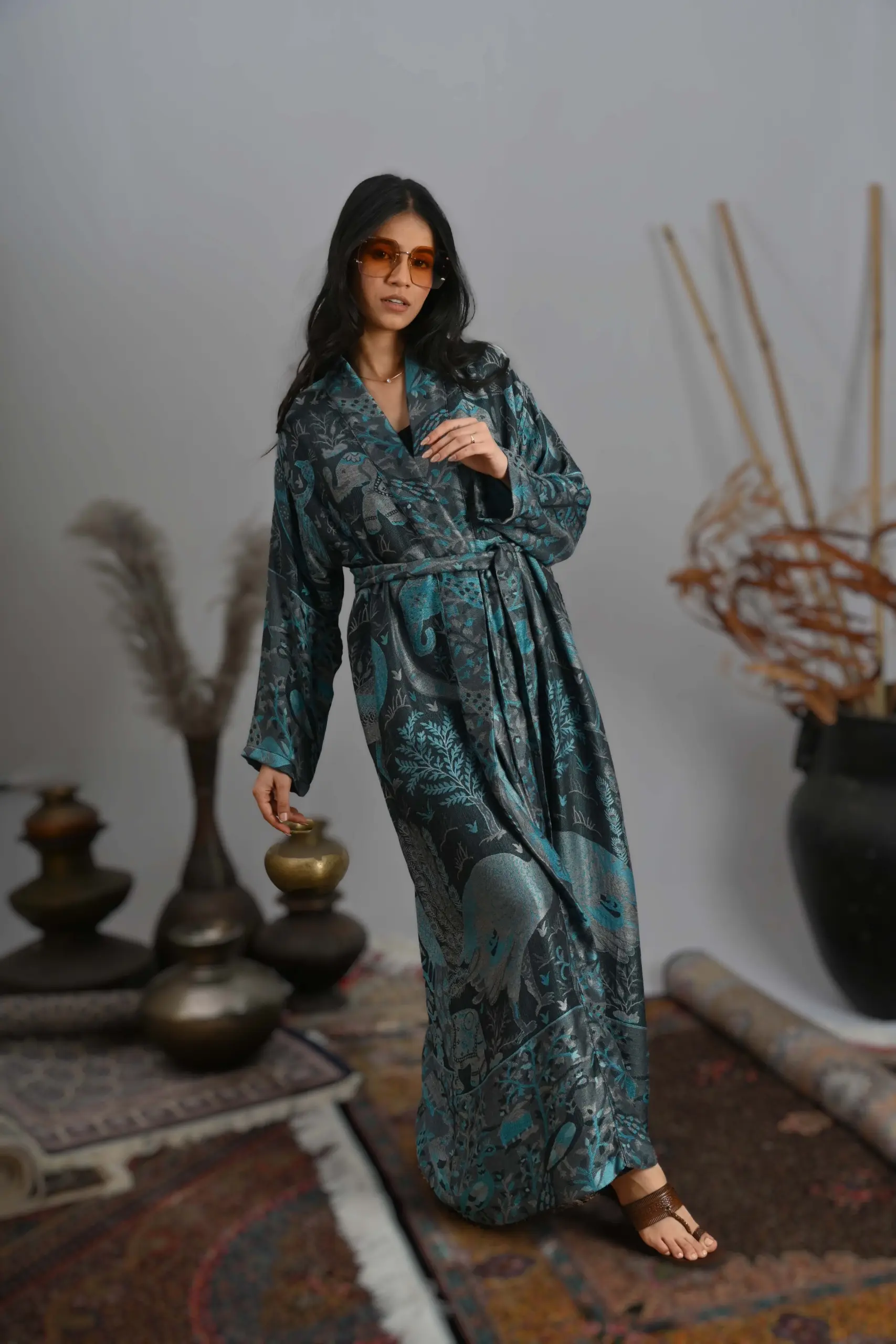 This luxury cashmere with bamboo thin kimono dressing robe for women will make you feel like a queen! simply want to chill out at home this cashmere with bamboo house coat, nothing beats the feeling of wrapping yourself in a luxurious silk kimono robe. The soft-to-the-touch cashmere lounge-wear feels like a dream against the skin and can instantly upgrade your leisure time and make you look like royalty with no effort at all. And the fact that the material is temp-regulating, naturally hypo-allergenic, ultra-cooling, and offers a slew of preventative aging benefits? That makes the robes an even more elite choice for a cozy night in. Here, shop the best silk dressing gown for every style, from sexy lace-trimmed kimonos to long elegant wraps to horse printed with this knitted reversible robe/cardigan options. The lightweight and breathable material prevents overheating and is perfect for any season.