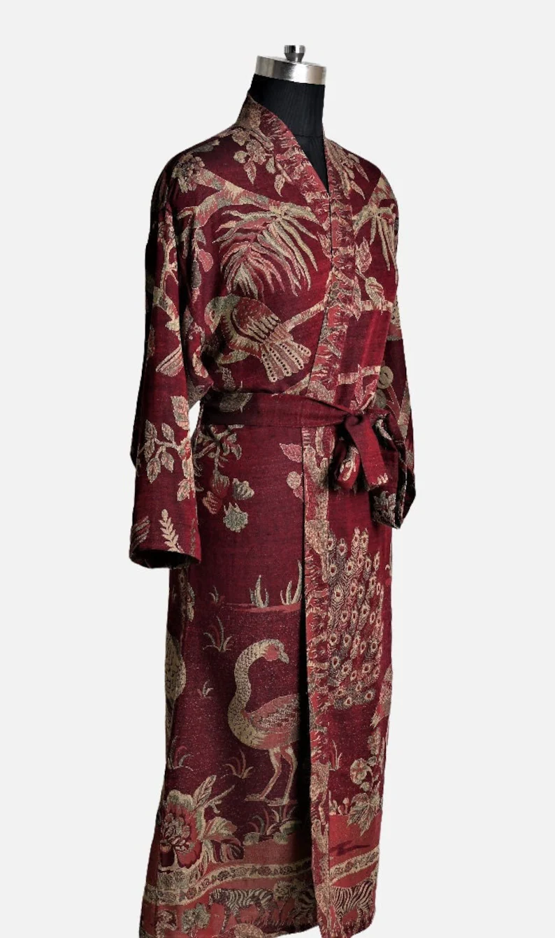 This luxury yak wool robe thin kimono dressing robe for men and women will make you feel like a King/queen! This yak wool house coat is soft, gentle to your skin, styled with a shawl collar and tie belt, it will make you to feel treasured and unique. Dressing Bathrobe is beautiful from inside out, it will provide you soft touch and warmth of yak wool on a daily basis. I am sure, this knitted reversible robe/cardigan will make any day into a special occasion! Indulge in the finer things, and envelop yourself in our soft Yak Wool men’s and women’s robe, designed for unparalleled plushness and luxury. Wear it With or Without Belt and Can be styled as an open Jacket . We tailor our yak wool robes to perfection, featuring a long coat with a shawl collar, a tie belt with loops, Stay chic and comfortable at home, or go out to town with this versatile reversible robe that doubles as outerwear. The drop shoulder sleeve tapers in at the wrist for a sleek, slim-fitting look tailored to fit well. The lightweight and breathable material prevents overheating and is perfect for any season.