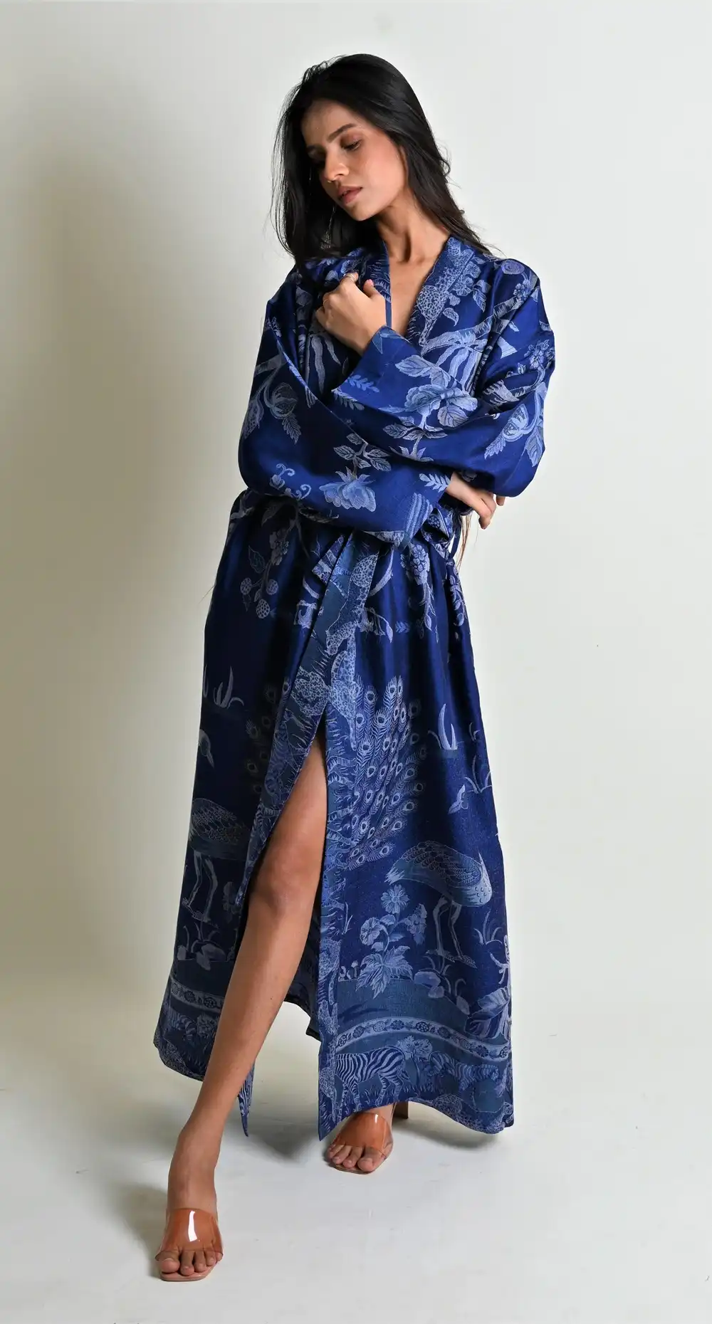 This luxury yak wool robe thin kimono dressing robe for men and women will make you feel like a King/queen! This yak wool house coat is soft, gentle to your skin, styled with a shawl collar and tie belt, it will make you to feel treasured and unique. Dressing Bathrobe is beautiful from inside out, it will provide you soft touch and warmth of yak wool on a daily basis. I am sure, this knitted reversible robe/cardigan will make any day into a special occasion! Indulge in the finer things, and envelop yourself in our soft Yak Wool men’s and women’s robe, designed for unparalleled plushness and luxury. Wear it With or Without Belt and Can be styled as an open Jacket . We tailor our yak wool robes to perfection, featuring a long coat with a shawl collar, a tie belt with loops, Stay chic and comfortable at home, or go out to town with this versatile reversible robe that doubles as outerwear. The drop shoulder sleeve tapers in at the wrist for a sleek, slim-fitting look tailored to fit well. The lightweight and breathable material prevents overheating and is perfect for any season.