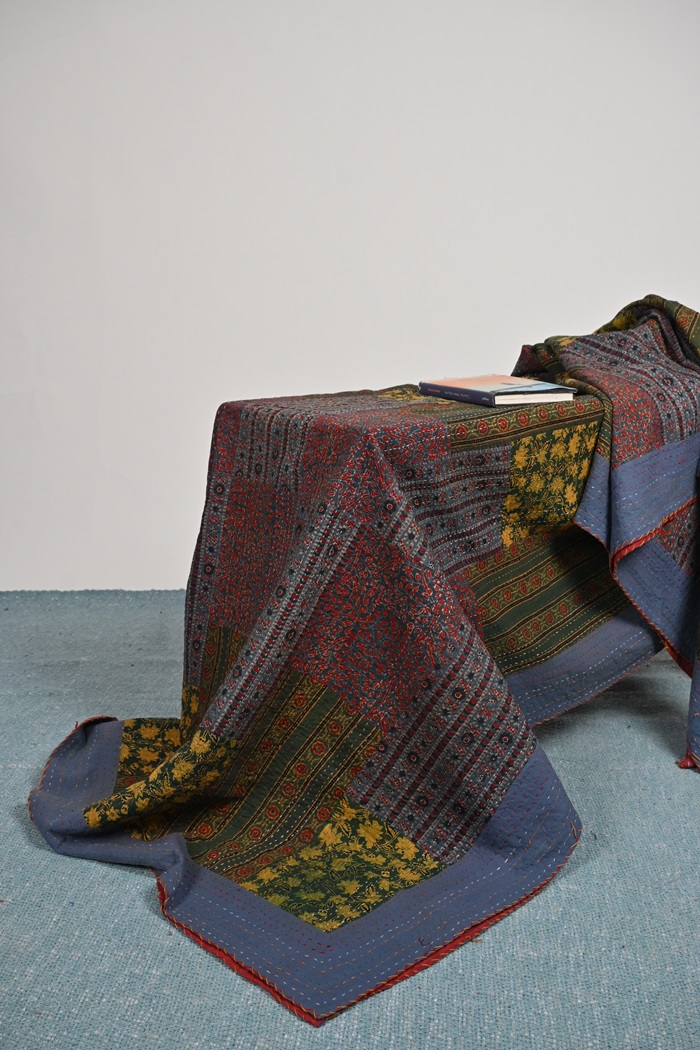 Indian Kantha Handmade Quilting Work Cotton Bedspread