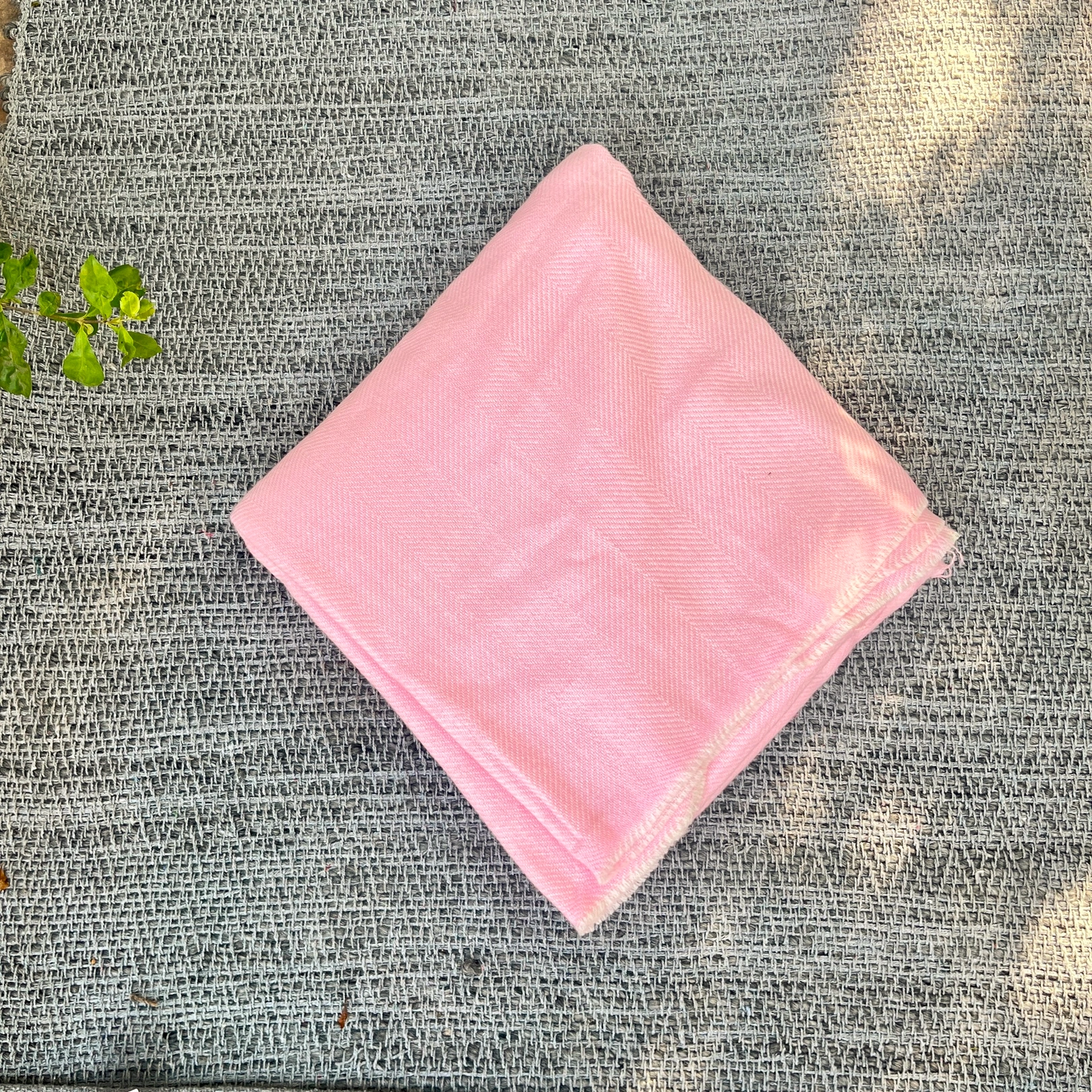 Baby Pink Handwoven Soft Herringbone Pattern Blanket