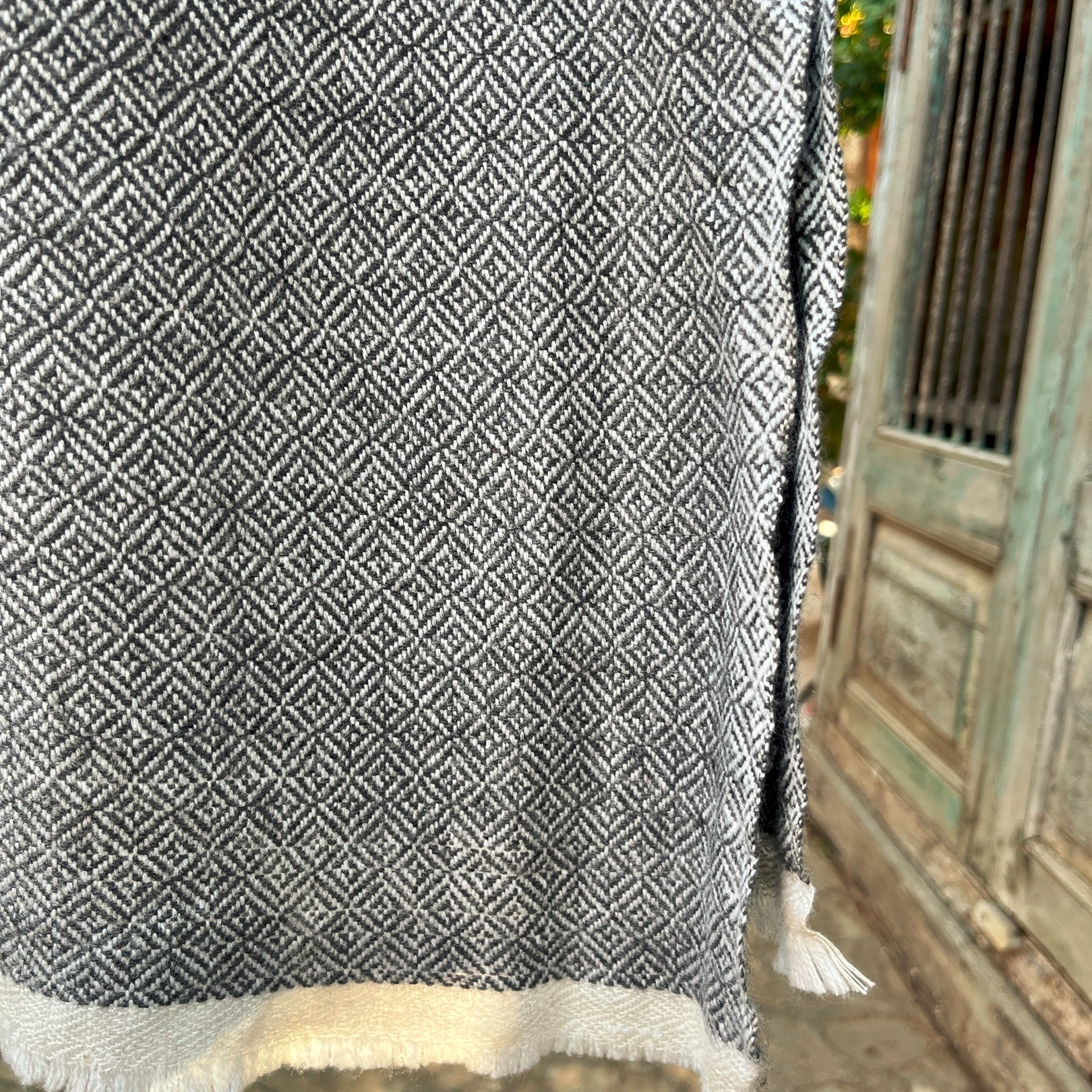 Charcoal Color Handwoven Soft Mini Daimond Pattern Blanket