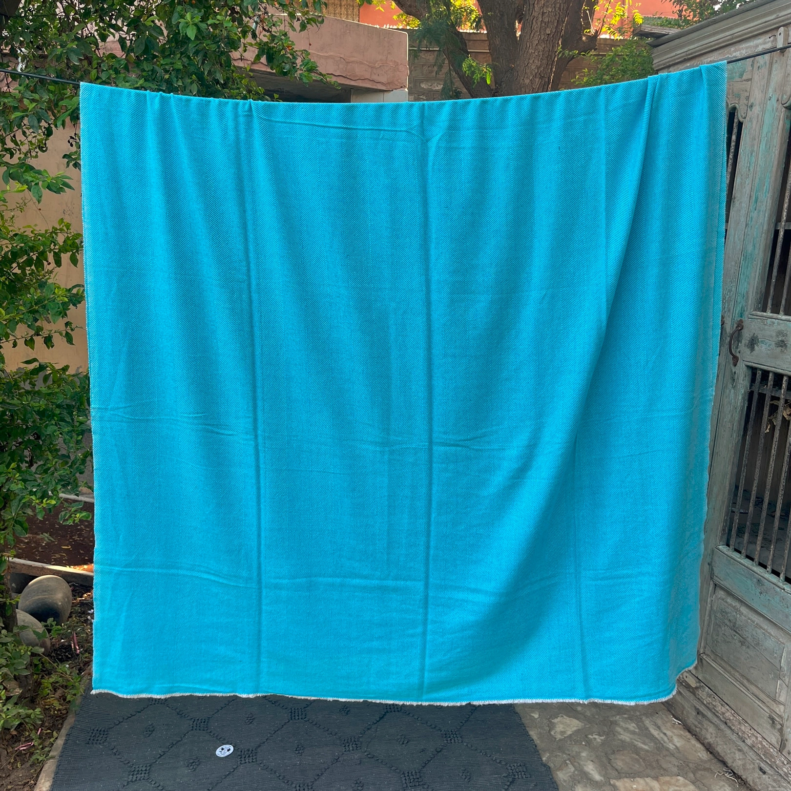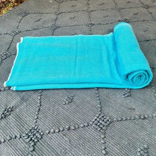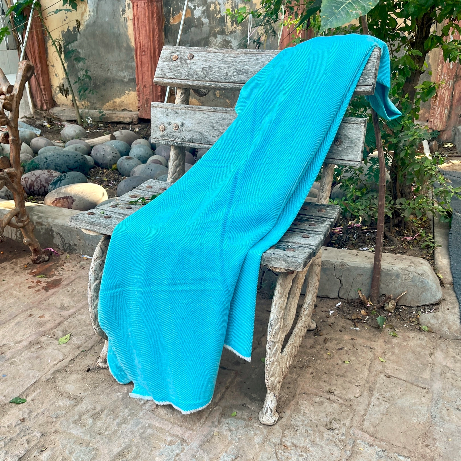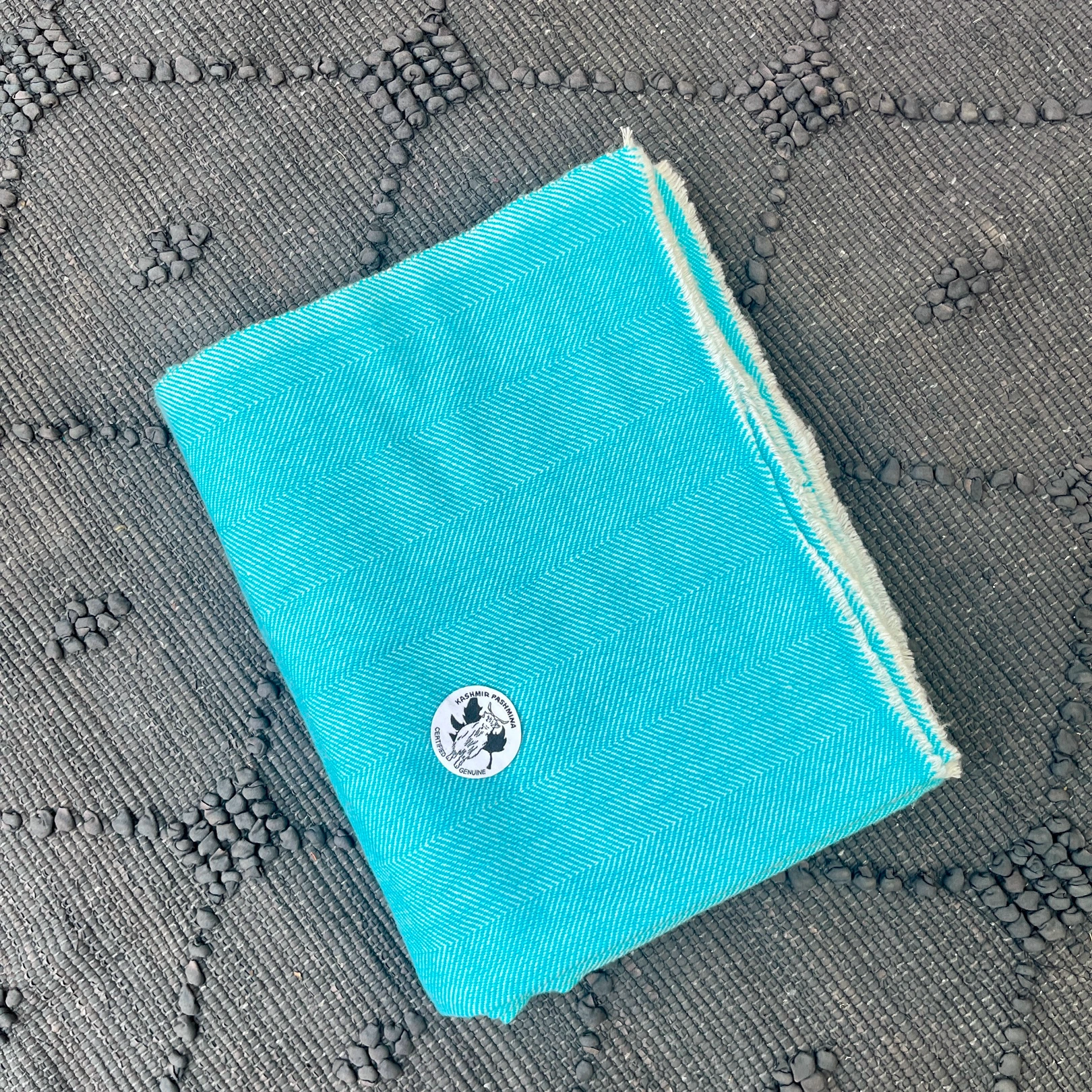 Chlorine Blue Handwoven Soft Herringbone Pattern Blanket