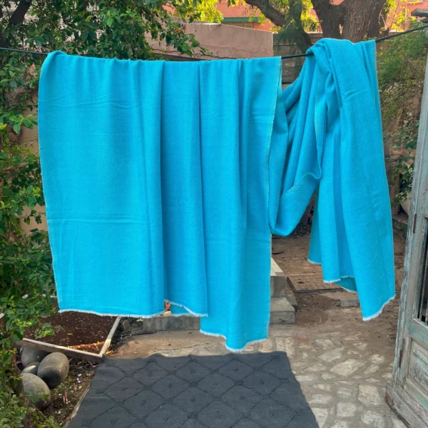 A pashmina blanket is a luxurious type of blanket made from pashmina wool, which comes from the underbelly hair of the Capra hircus goat, commonly found in the Himalayan regions of Nepal, India, and Pakistan. Pashmina wool is known for its softness, warmth, and light weight, making it highly prized for blankets and shawls. Pashmina blankets are often woven with intricate designs and are valued for their quality and comfort. They are popular as gifts and are considered a symbol of luxury and elegance.   Perfect for: Snuggling Throw on the sofa Pashmina isĀ  Softer and 7-8 times warmer than traditional wool. A perfect choice for Easter, Christmas, Winter, Good Friday gift too. High-high, on the slopes of the mountains of Mongolia, snow-white Kashmir goats graze peacefully and freely, not suspecting their own exceptionalism.   Each Kashmiri goat receives from 100 to 200 grams of the best, elite fiber. This is the warmest of all types of wool. Therefore, it is not surprising that pashmina blankets with exceptional properties are obtained from it. It’s also seven to eight times more insulating than sheep’s wool, so perfect for draping over your bed or sofa – or snuggling under in front of the fire Care and main recommendations – A new product from sheep’s wool should be aired outdoors, preferably within a few hours. – Wash the wool item on your own, better to do it manually. It is recommended to soak the blanket in warm water (with temperature above 30 degrees). – Do not use powders contain bleaching or tint components. – Do not RUB, wring or stretch wool products, as they can change shape to stretch.