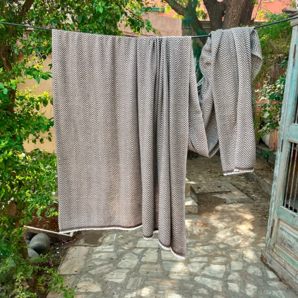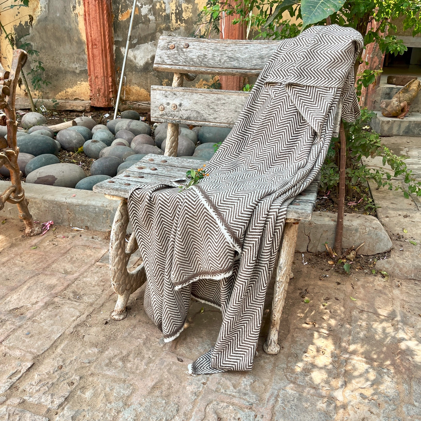 Coco Brown Handwoven Soft Zig-Zac Pattern Blanket