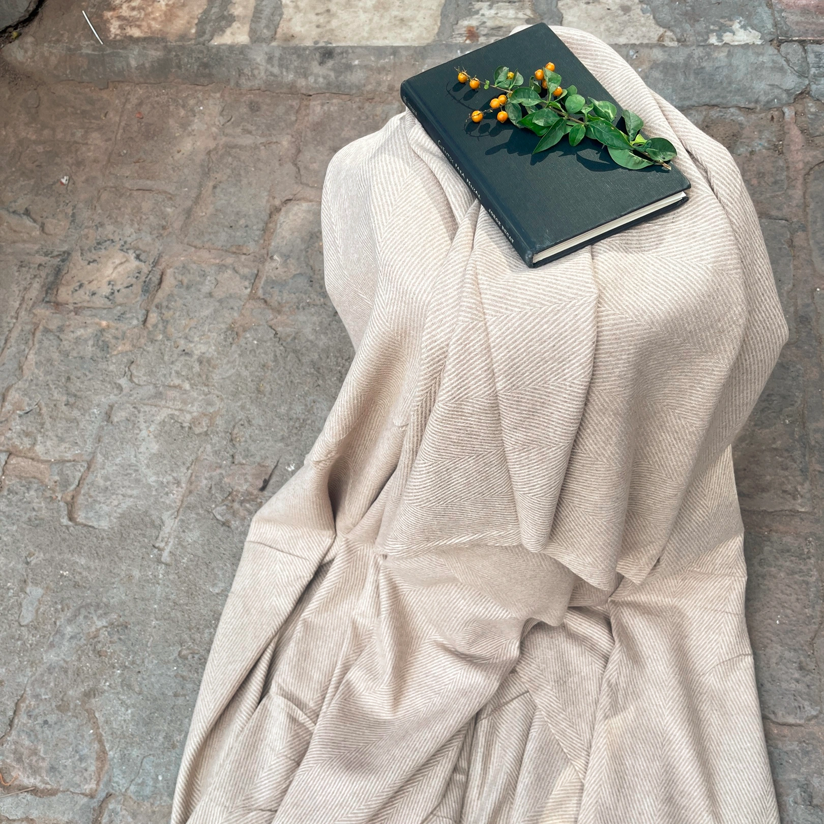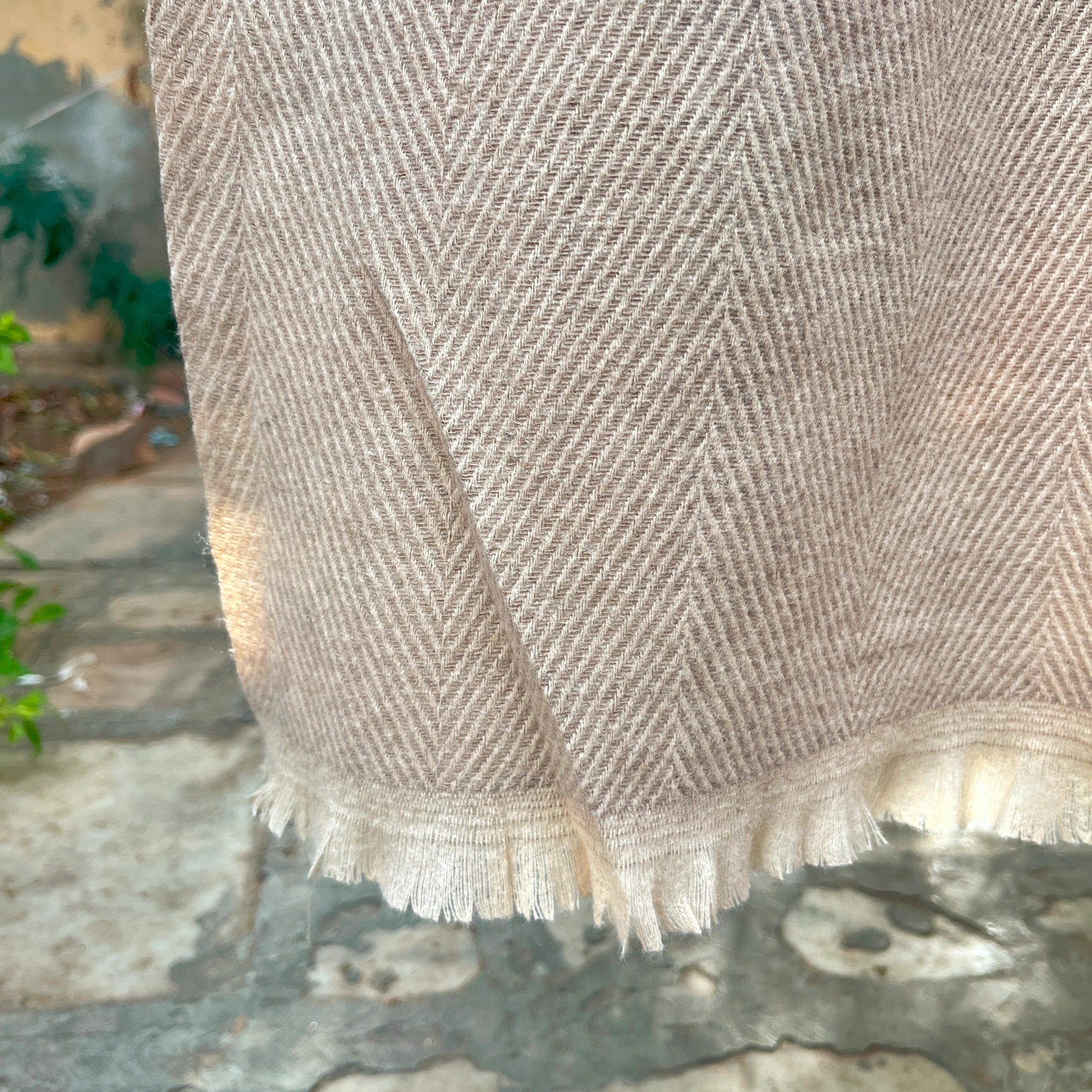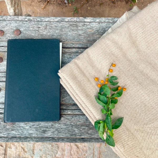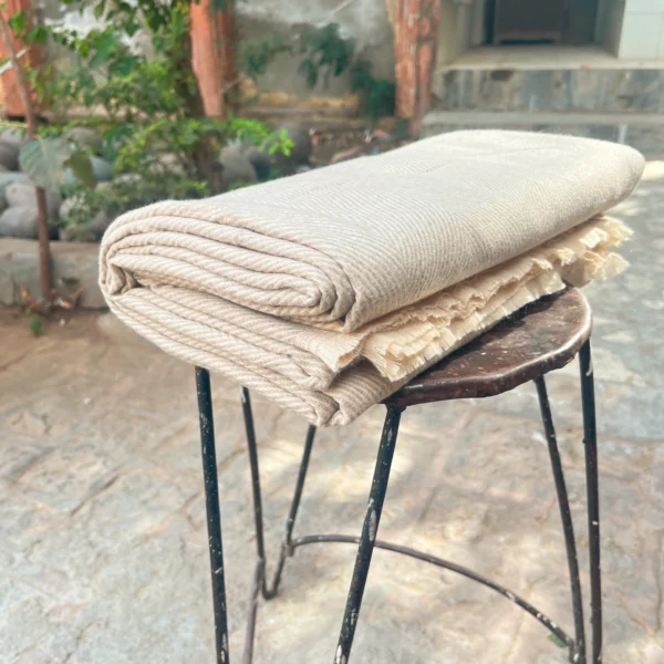 Cream Handwoven Soft Herringbone Pattern Blanket