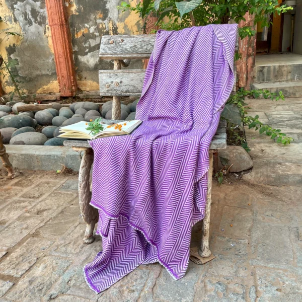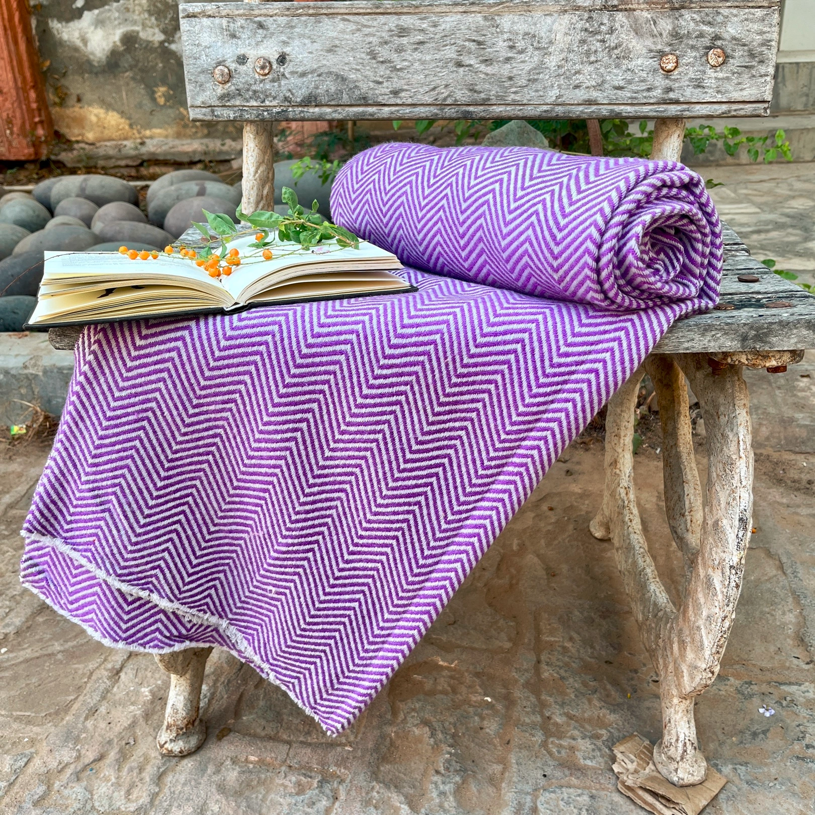 Lavender Handwoven Soft Zig-Zac Pattern Blanket