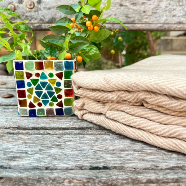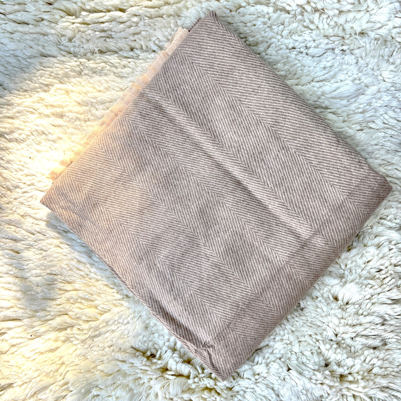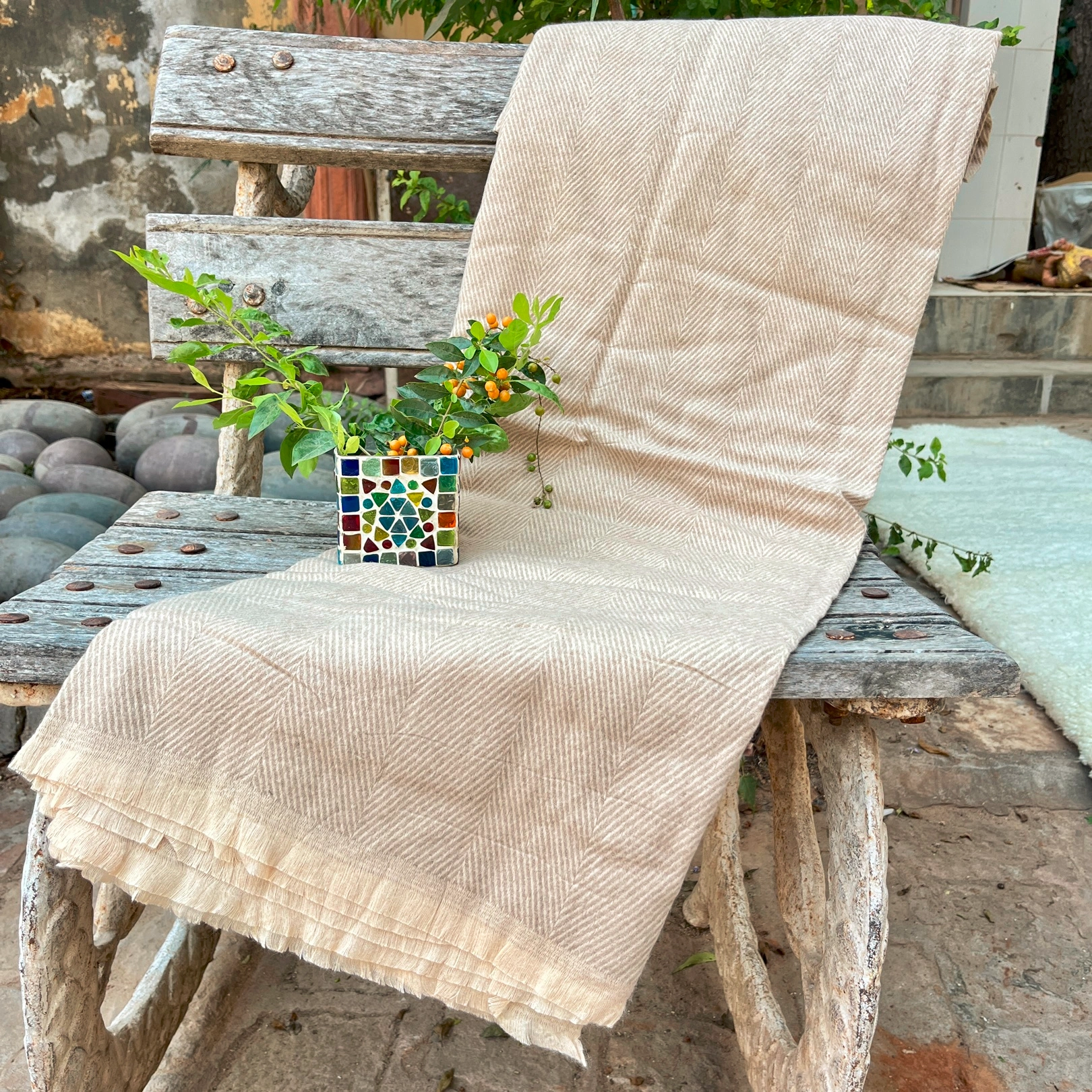 Sand Handwoven Soft Herringbone Pattern Blanket