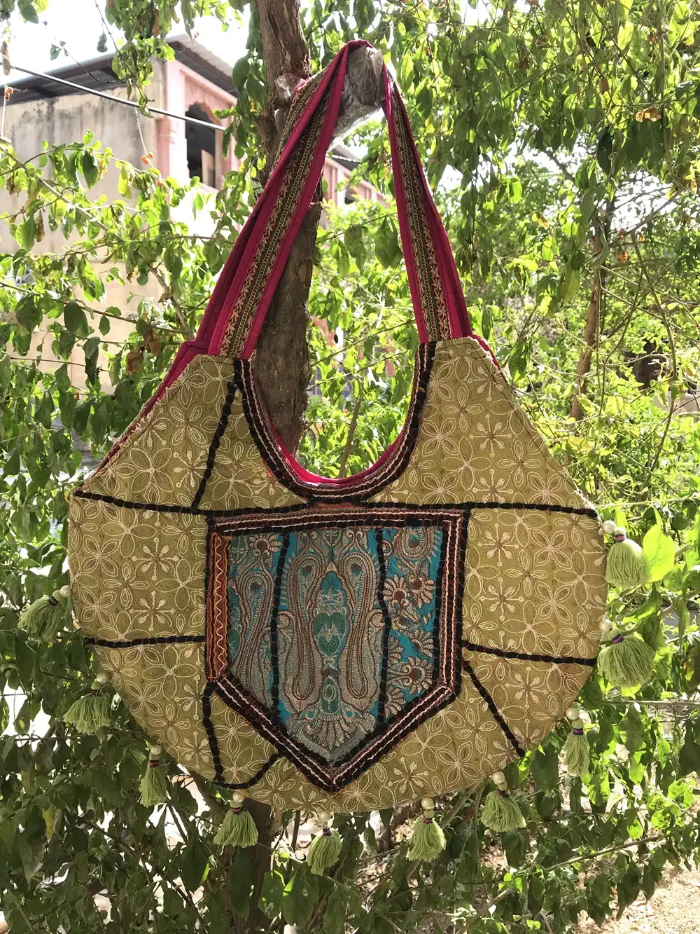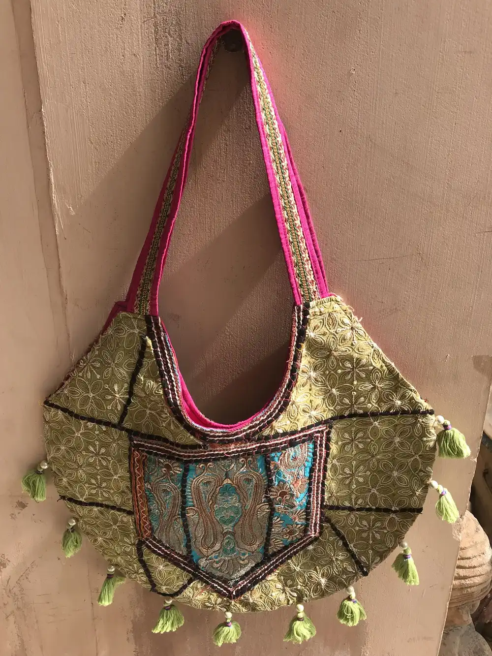 Bohemian Tribal and Unbeatable Indian Ethnic patchwork Bags & handbags are a hit with stylists all over the world. This perfectly sized shoulder bag is an ensemble from a selection of assorted bright vintage fabrics from India. Each bag is intricately embroidered and beautifully decorated.