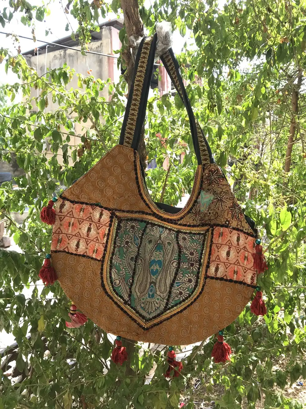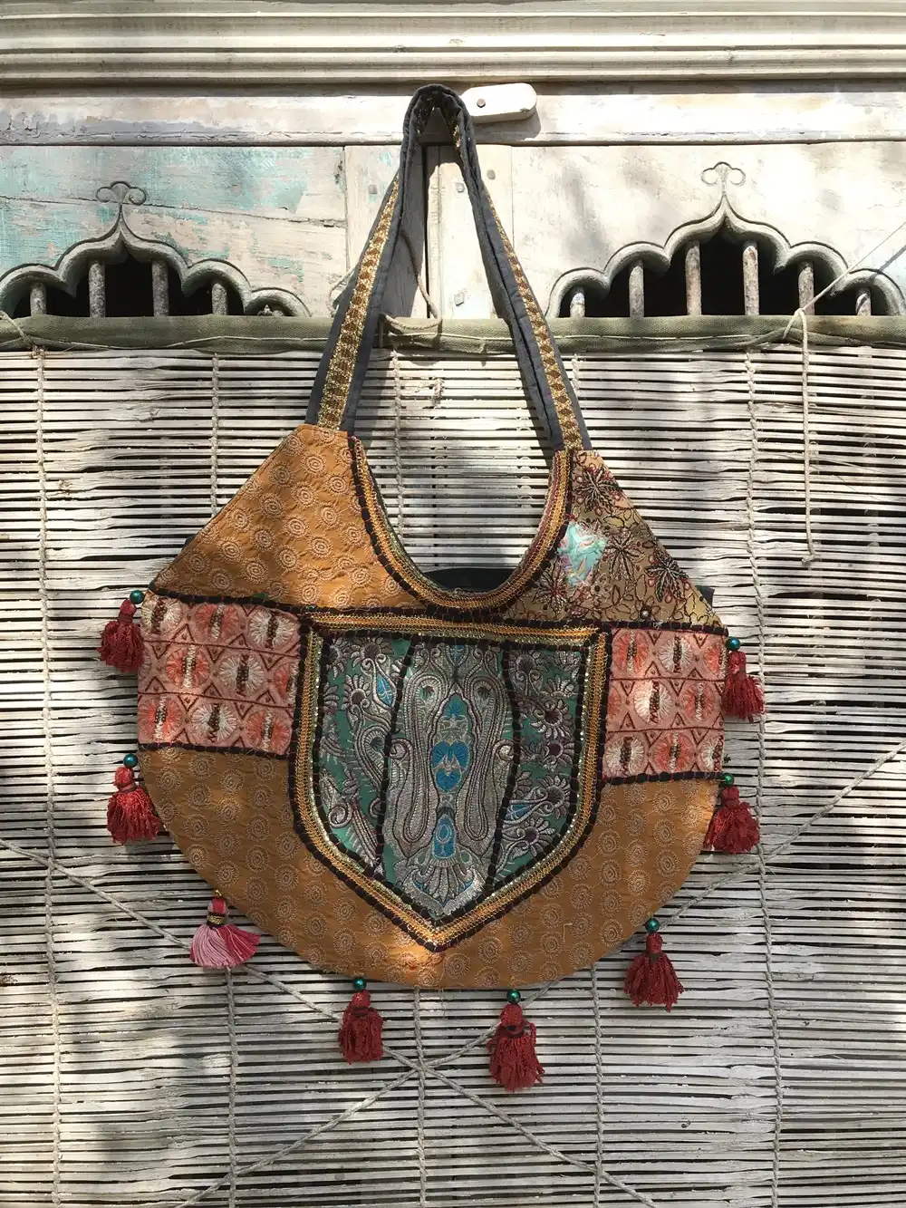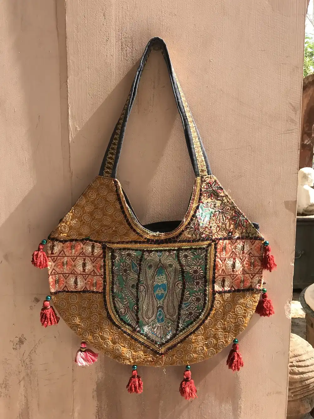 Bohemian Tribal and Unbeatable Indian Ethnic patchwork Bags & handbags are a hit with stylists all over the world. This perfectly sized shoulder bag is an ensemble from a selection of assorted bright vintage fabrics from India. Each bag is intricately embroidered and beautifully decorated.