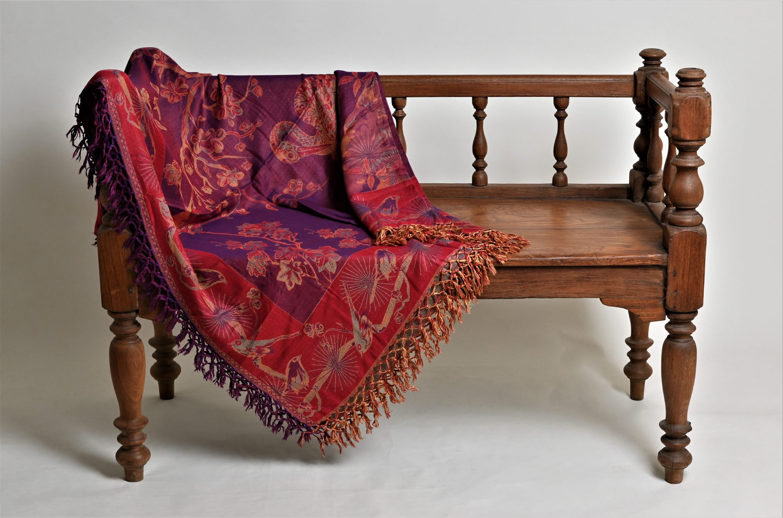 Crane Design Red Violet & Orange Yellow Reversible Throw Bedspread