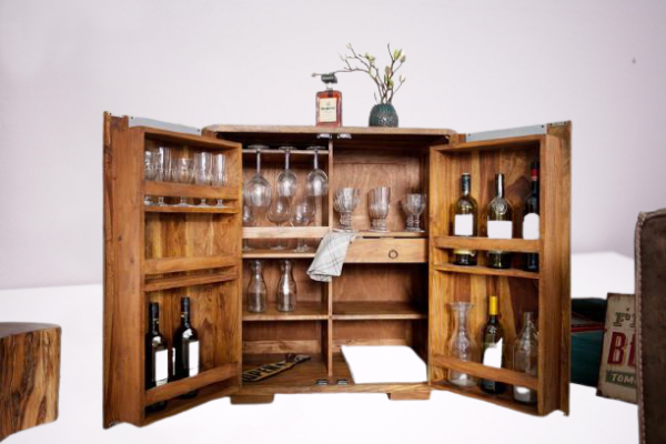 - Solid Wood: The bar is primarily constructed from solid wood, which is known for its durability and versatility. The type of wood used can vary, but it is likely to be a high-quality hardwood such as oak, walnut, or sheesham.