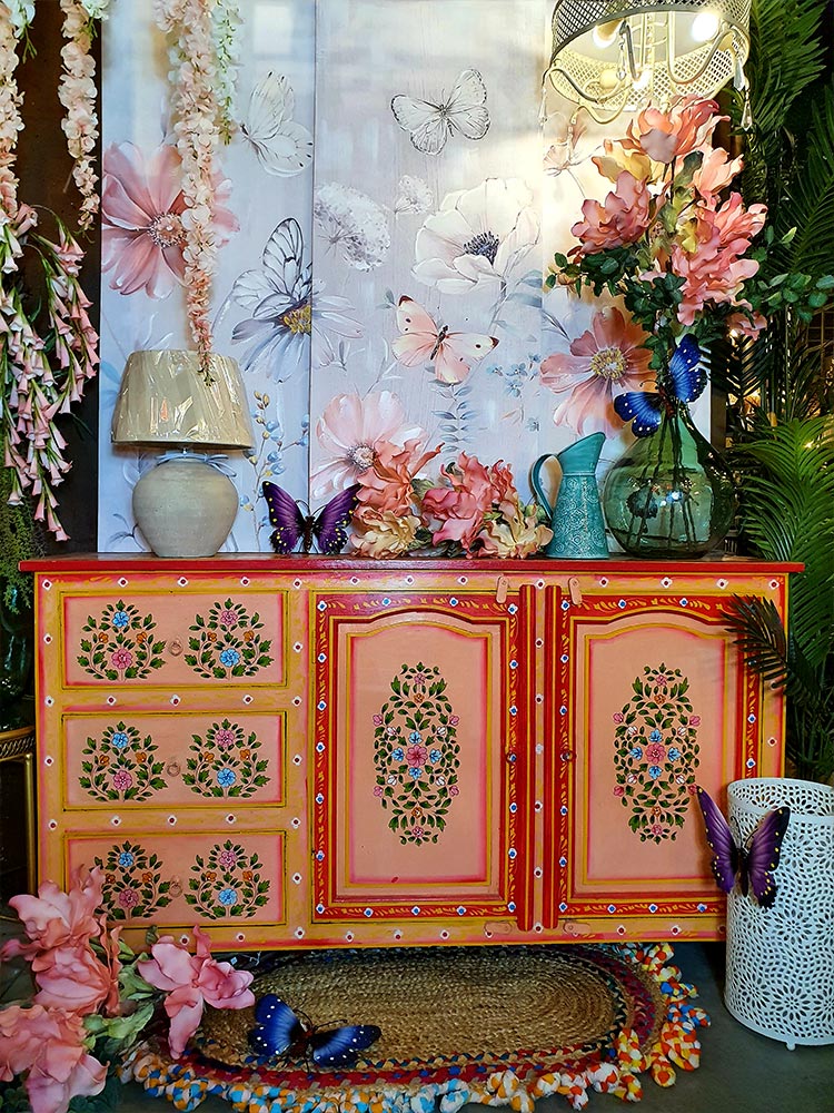 “Designer Flower Pattern Magician Wood Indian Furniture”