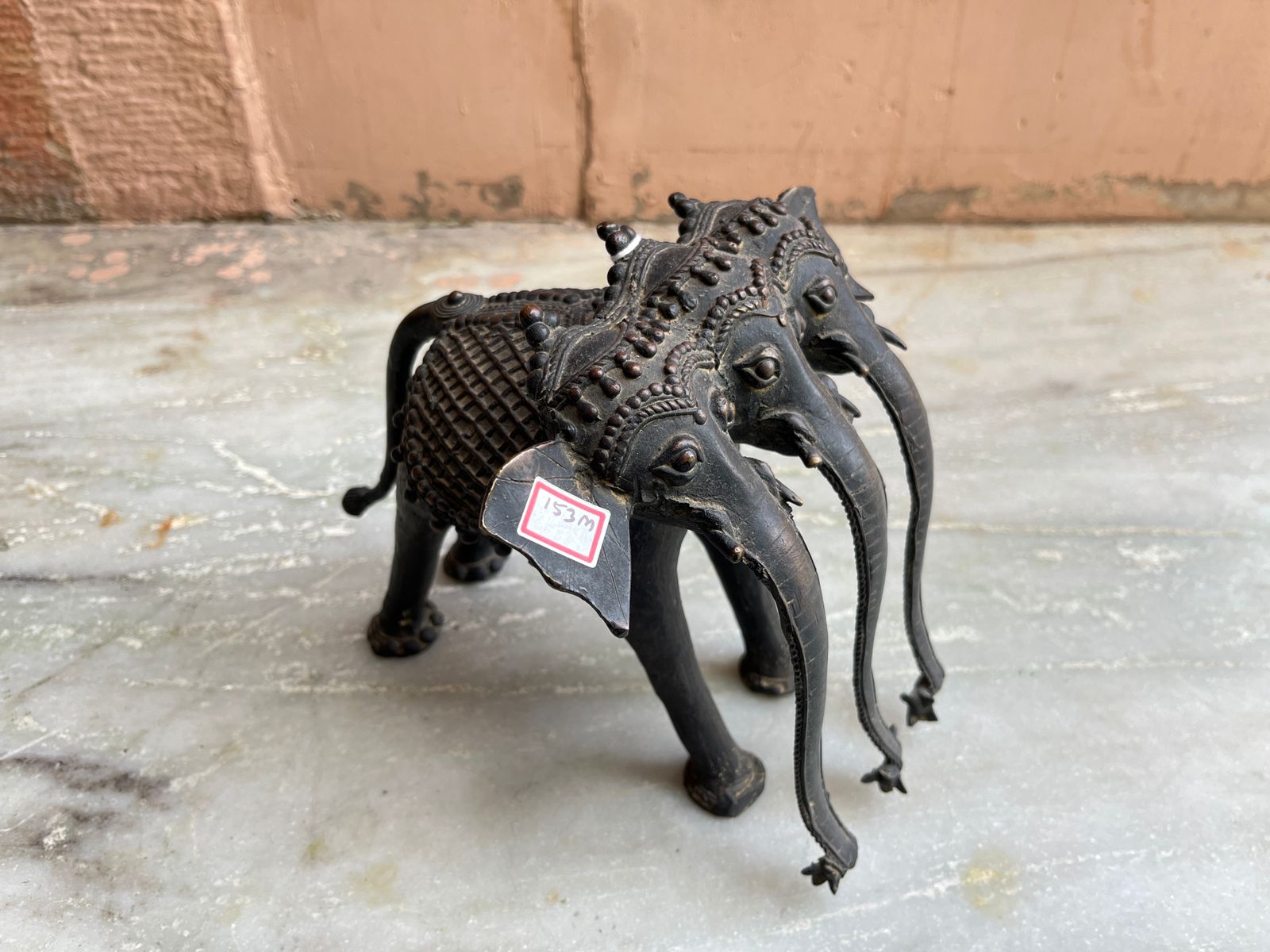 Vintage Nomadic Elephant Statue. About 100 Years old. Vintage Nomadic Three Head Elephant Statue ( Dhokra ), Art also known as Dhokra art is practiced in India for 4000 years. Dhokra is among the oldest traditional techniques of metal casting. This lovely decor sculpture will illuminate any room, its elegant shape radiates finesse and beauty. this sculpture could transform your living room, bedroom, office into a work of art. THANK YOU !