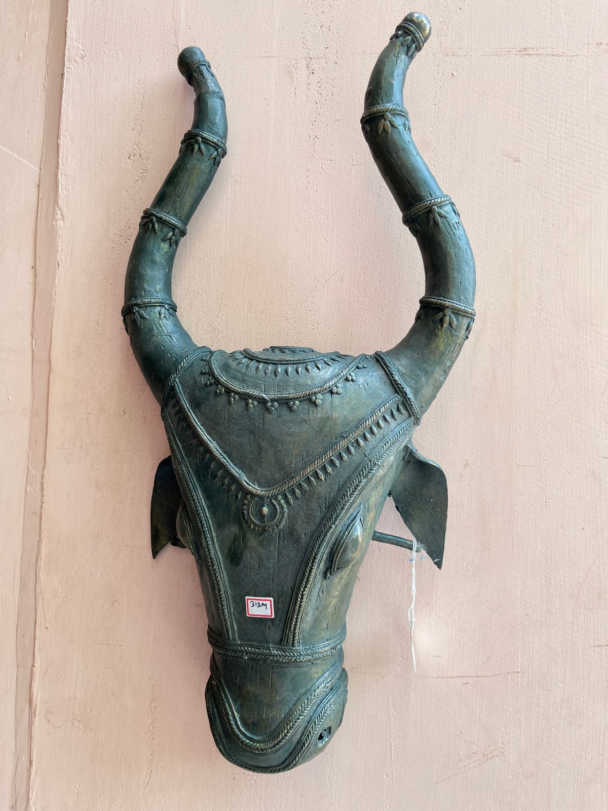Vintage Tribal Sitting Nandi Cow Head About 100 Years old. Vintage Tribal Sitting Nandi Cow Head ( Dhokra ), Art also known as Dhokra art is practiced in India for 4000 years. Dhokra is among the oldest traditional techniques of metal casting. This lovely decor sculpture will illuminate any room, its elegant shape radiates finesse and beauty. this sculpture could transform your living room, bedroom, office into a work of art. THANK YOU !