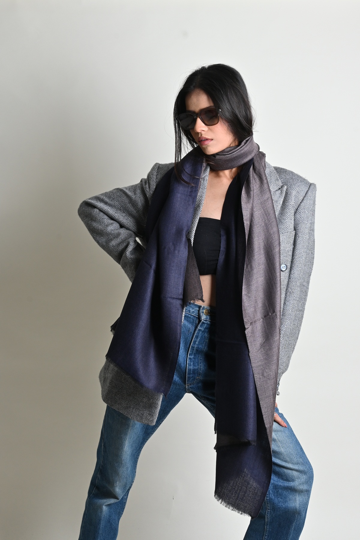 Loro Piana Inspired Deep Blue with Gray Reversible Pashmina Scarf
