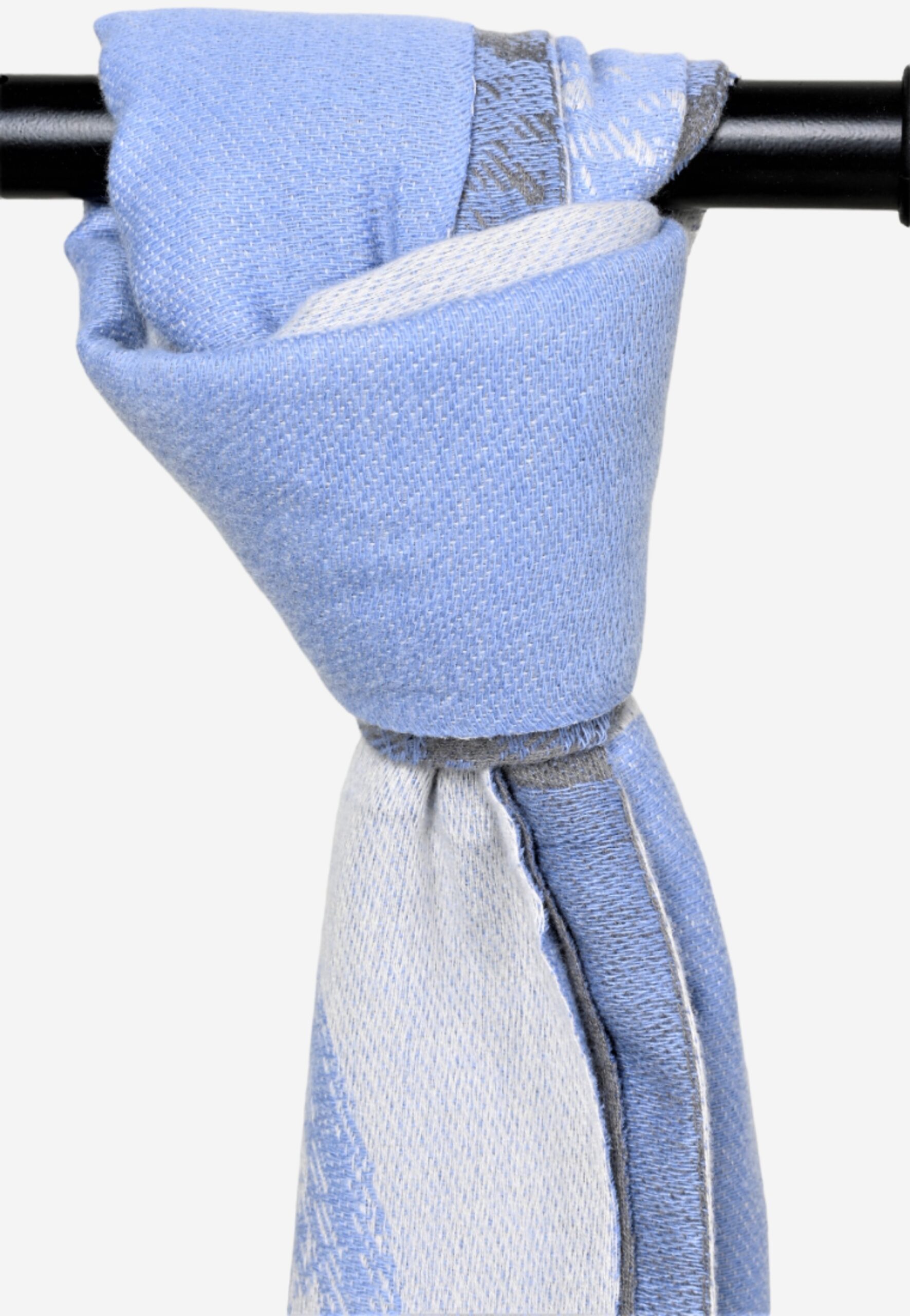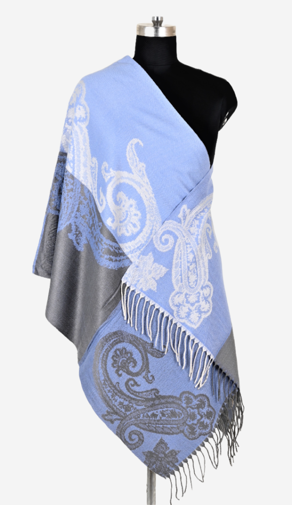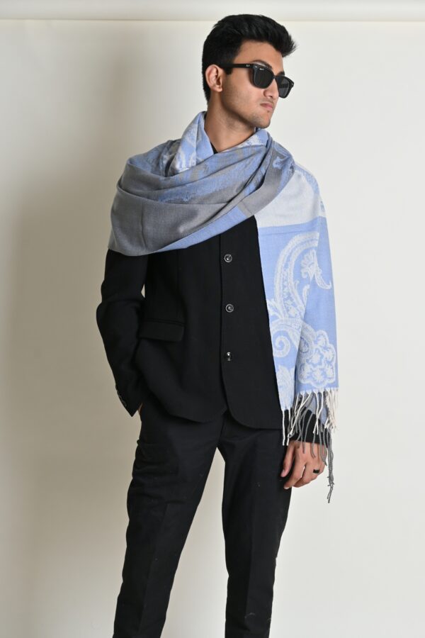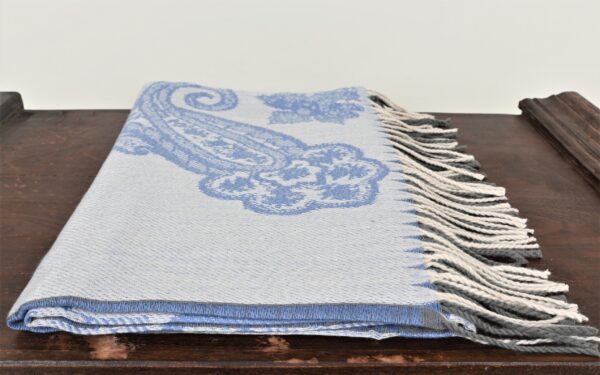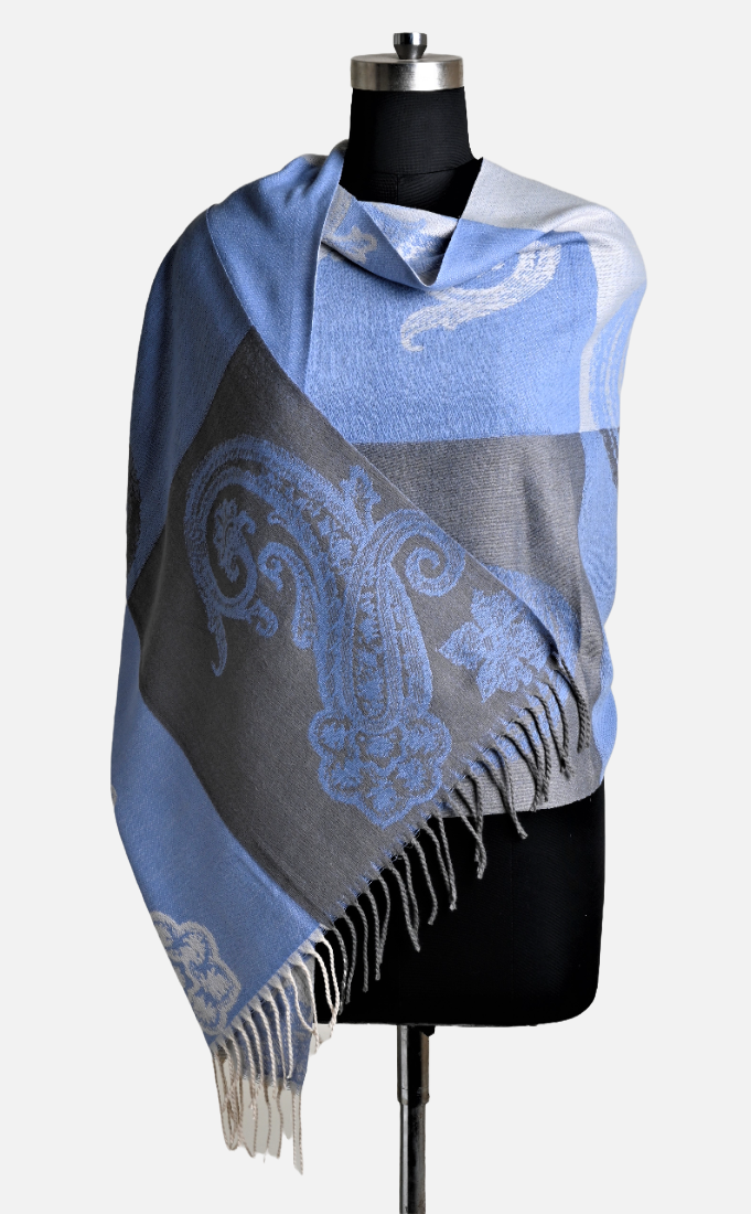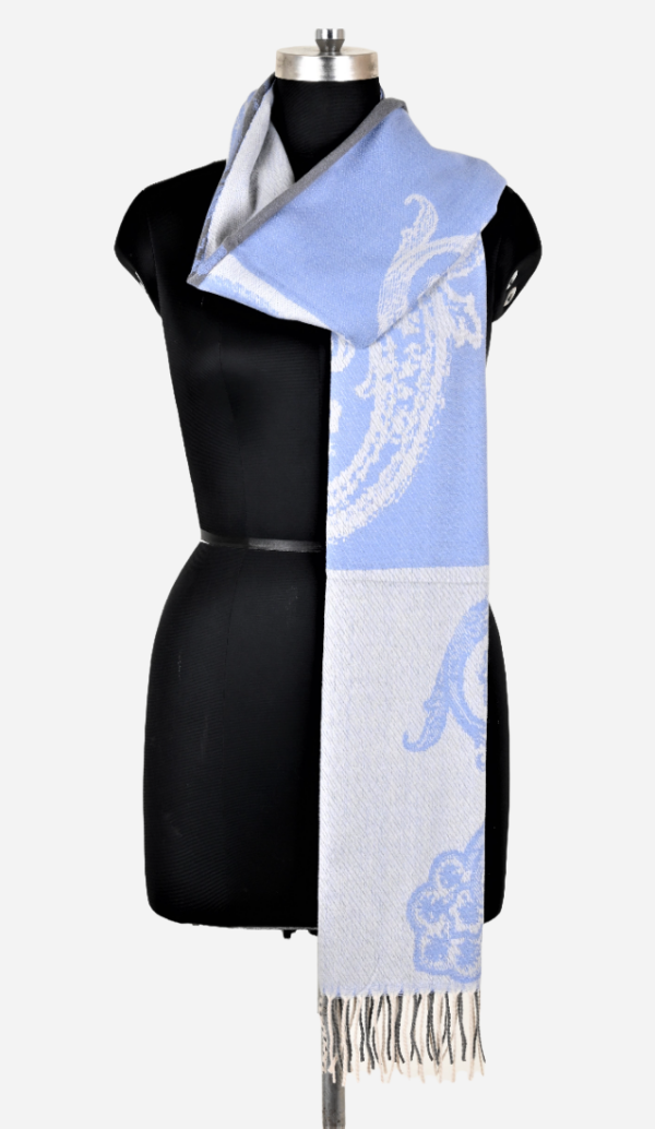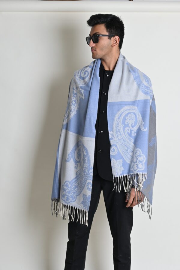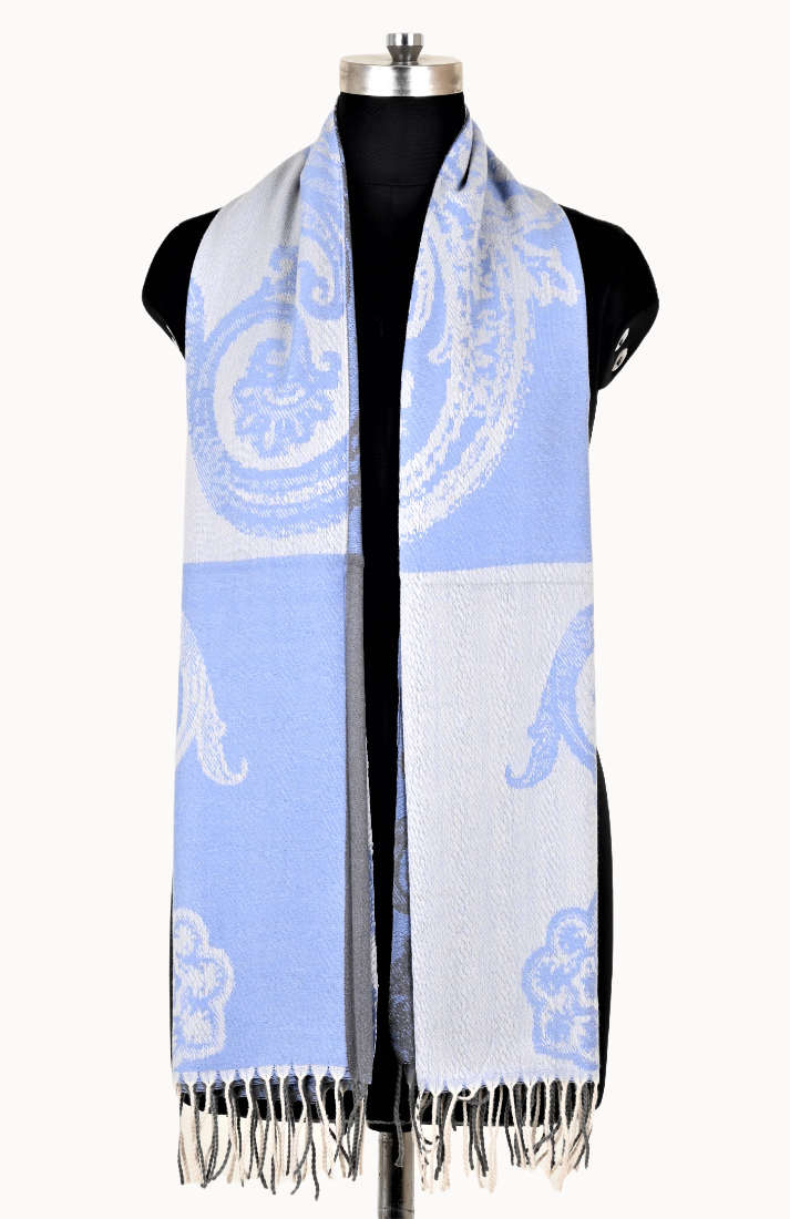 Sky Blue & Off White Paisley Woven Reversible Scarf