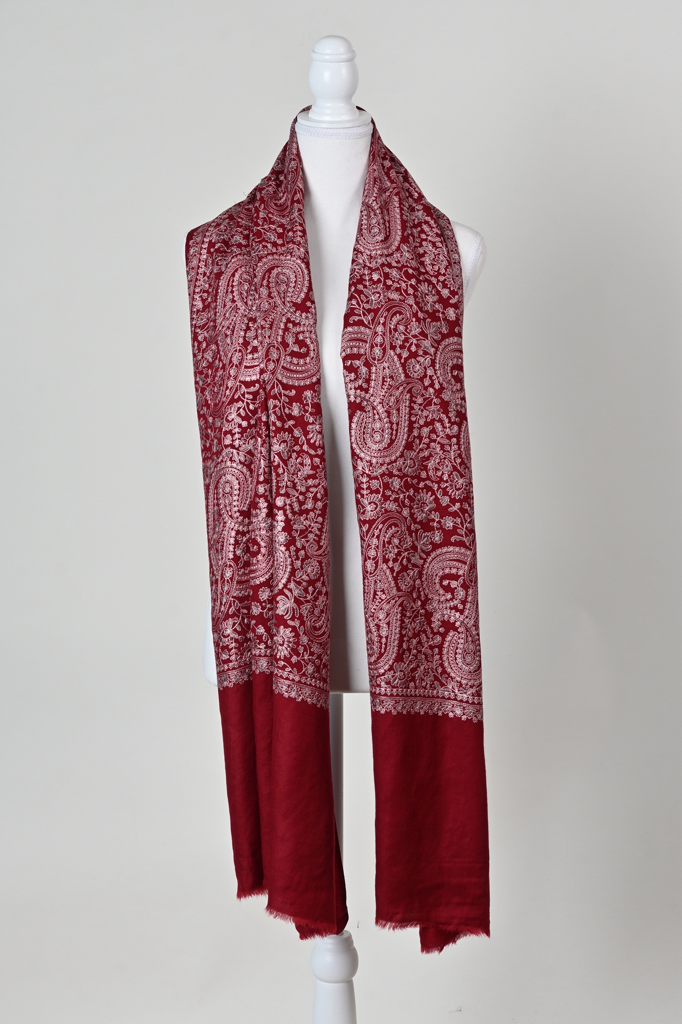 Size :- 100 x 200 cm / 40 x 79 inch. Material :- Cashmere , Fine Embroidered. Care Instruction:- Dry Clean Only.