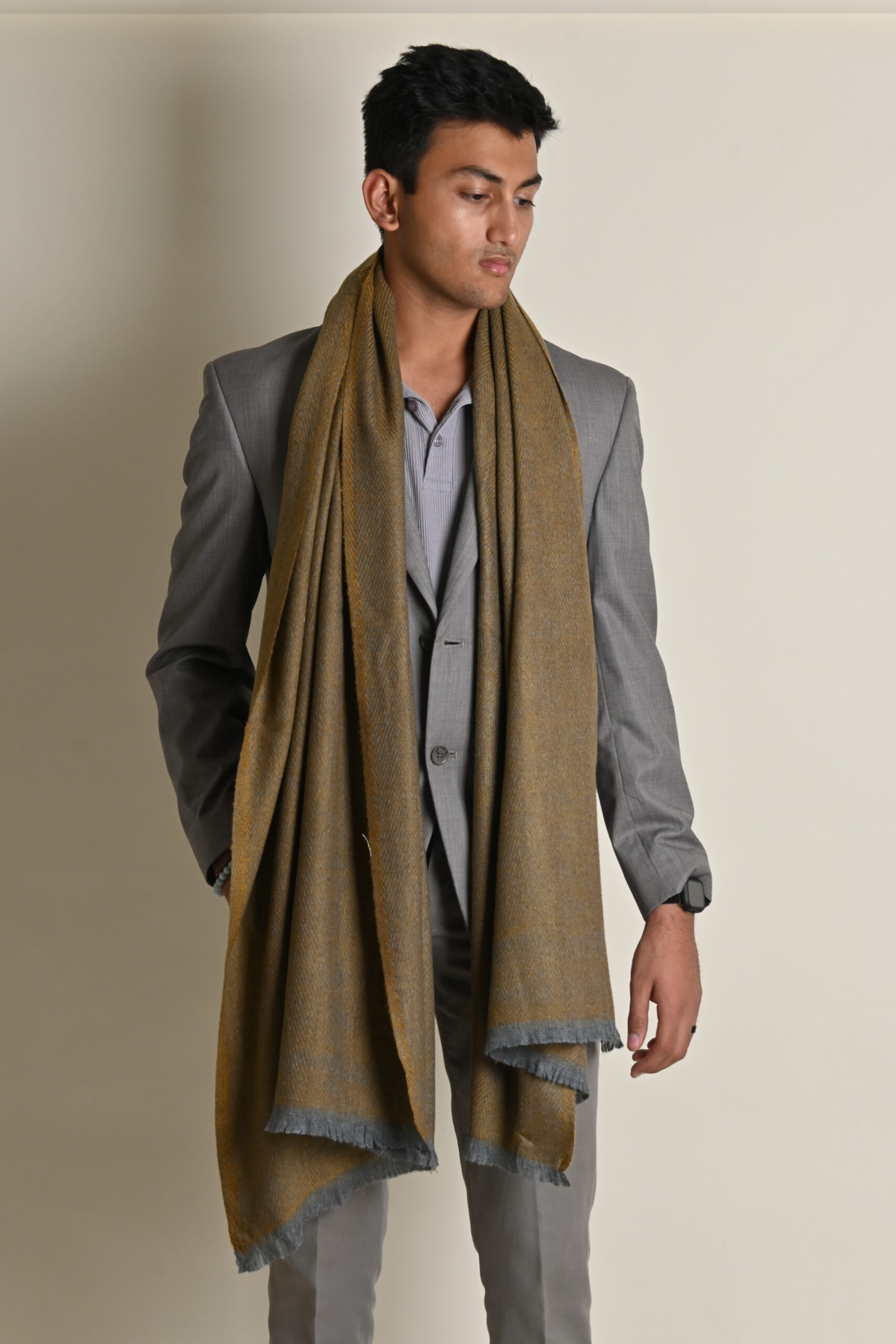 Handwoven Herringbone Pattern Wool Scarf