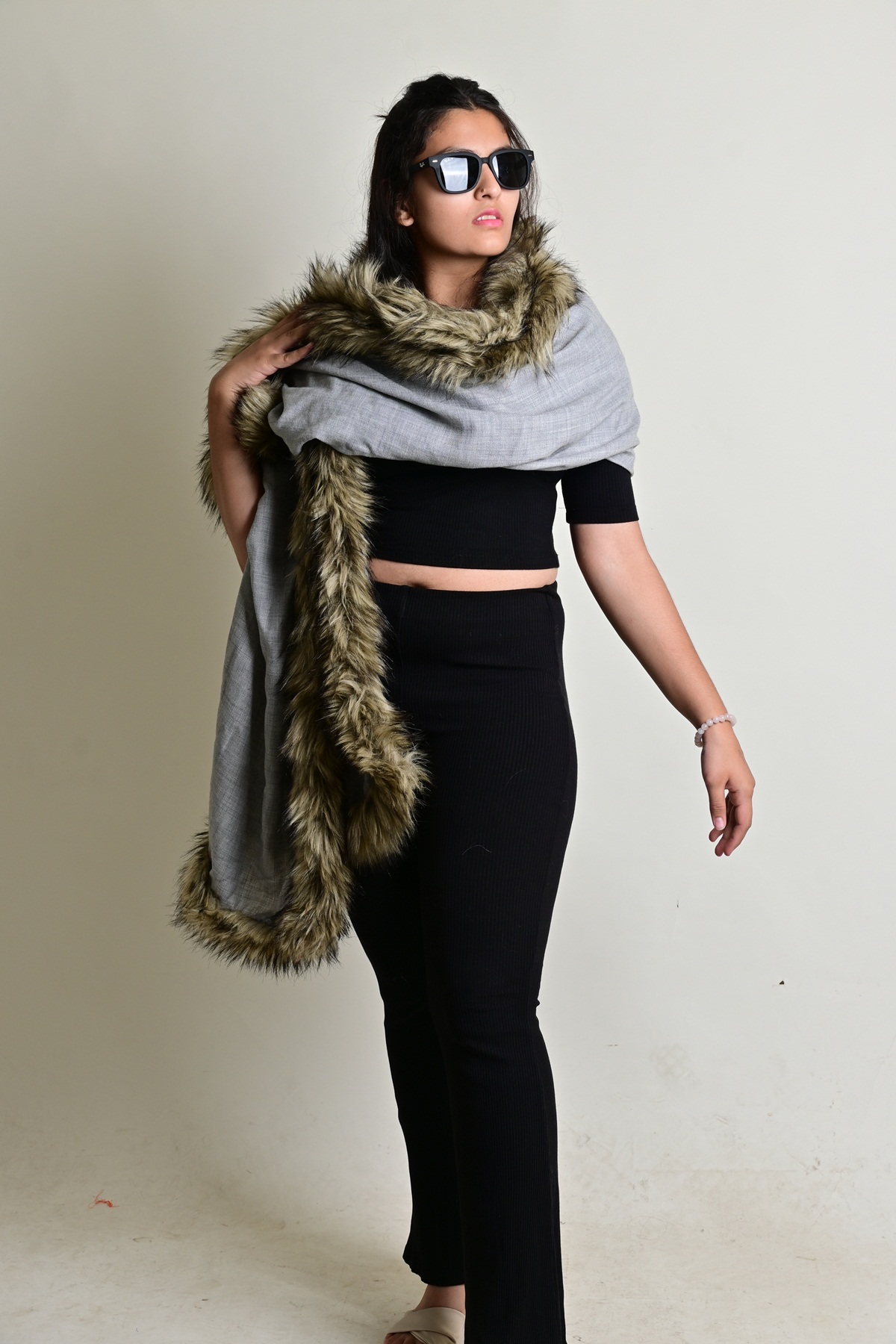 Size :- 70 x 200 cm / 28 x 79 inch. Material :- Handmade, Fox Fur, Fine Wool. : Unisex winter scarf : Dry clean (Recommended)
