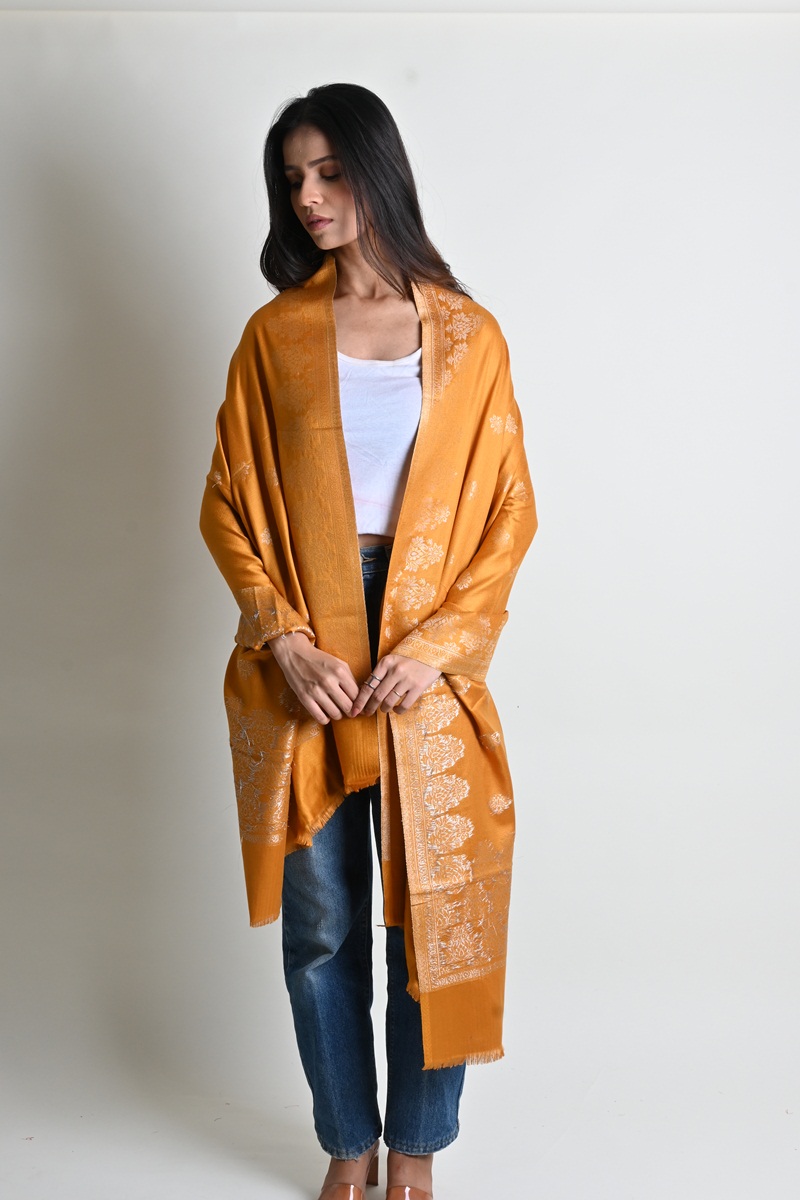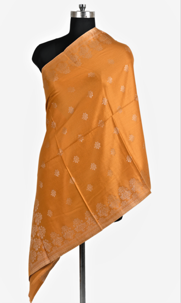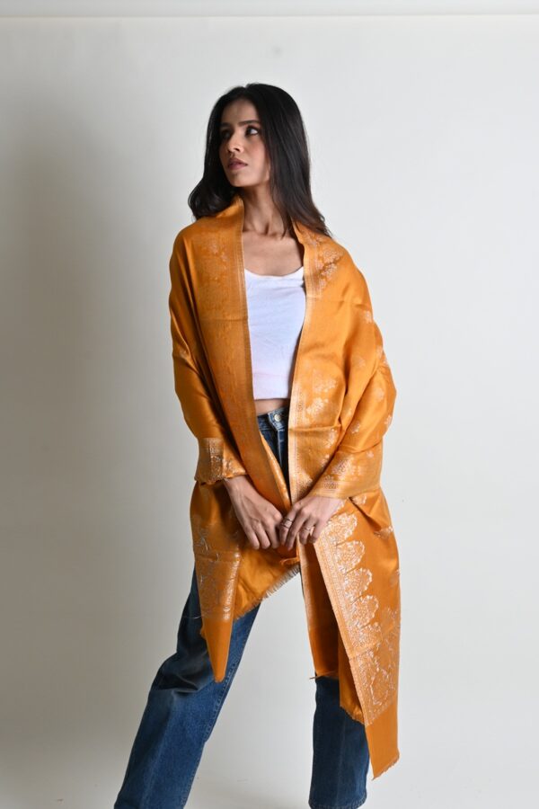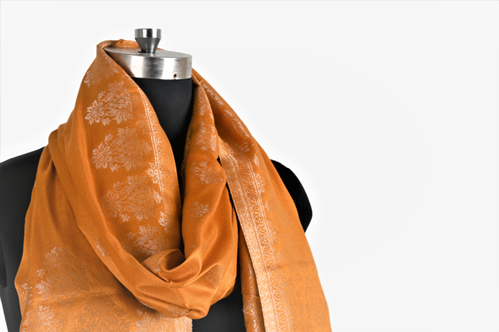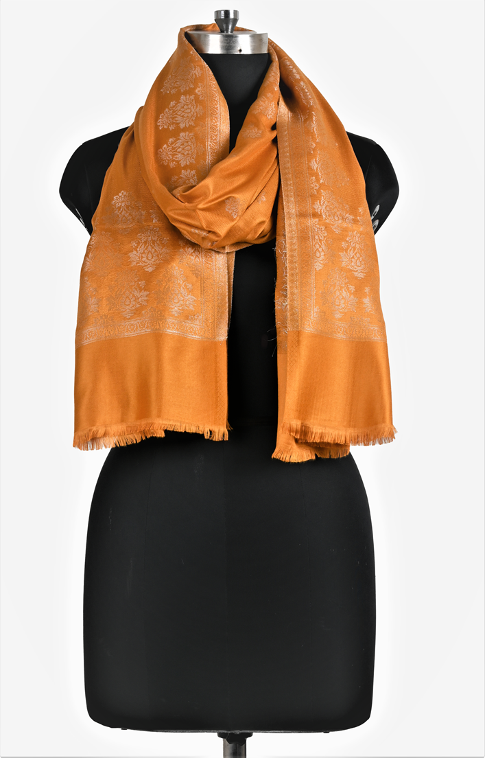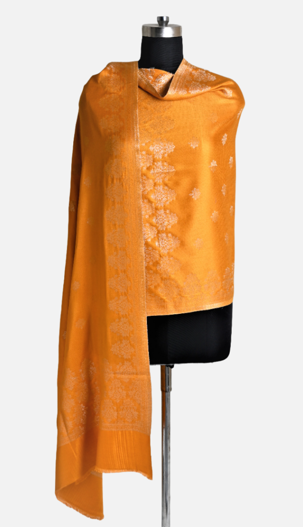 : 70 cm X 200 cm (27.5 inches X 78.7 inches) : Pashmina, Silk, Handwoven : Unisex winter scarf Care Instructions: – Dry Clean Only. Regular Steam Ironing recommended to avoid pilling. To be stored in a moisture-free environment, away from direct sunlight.