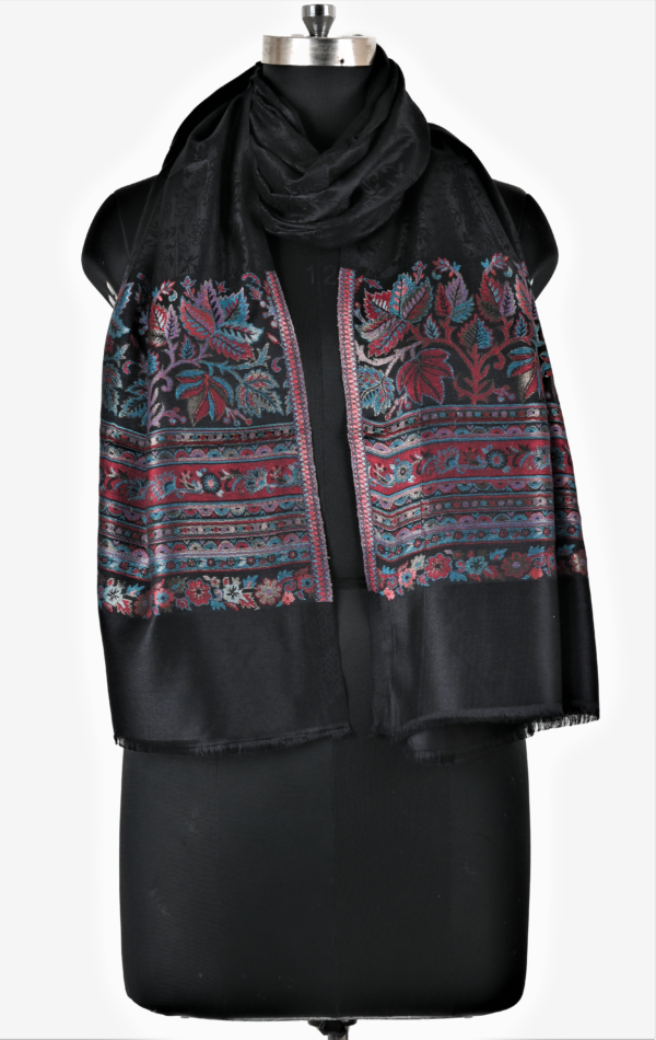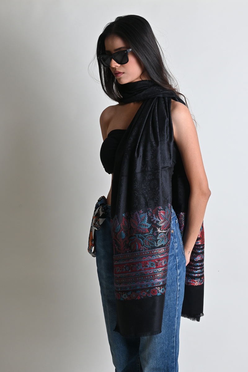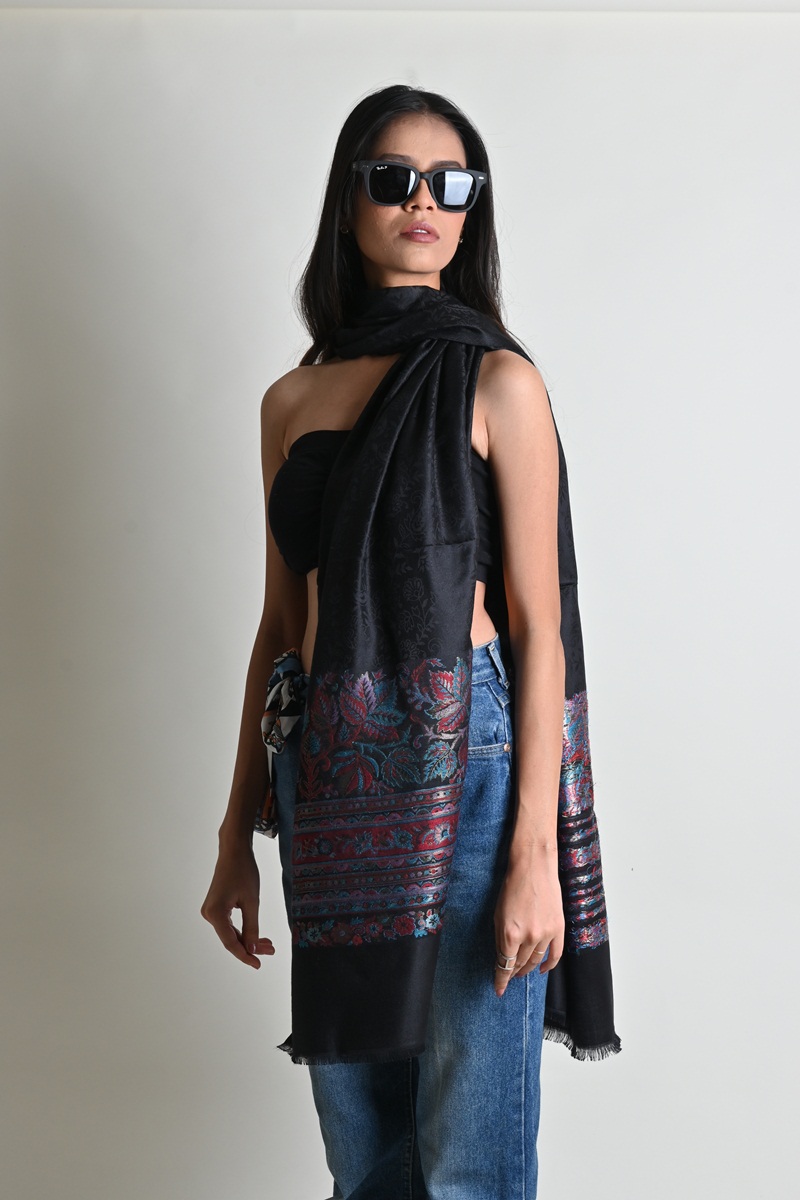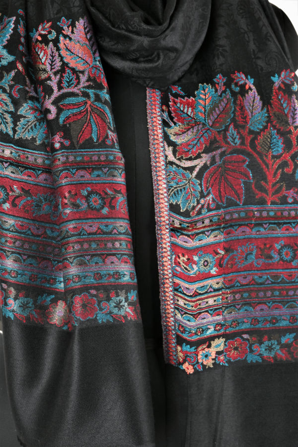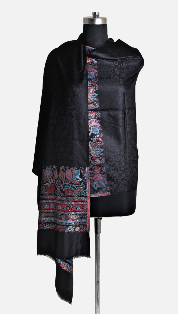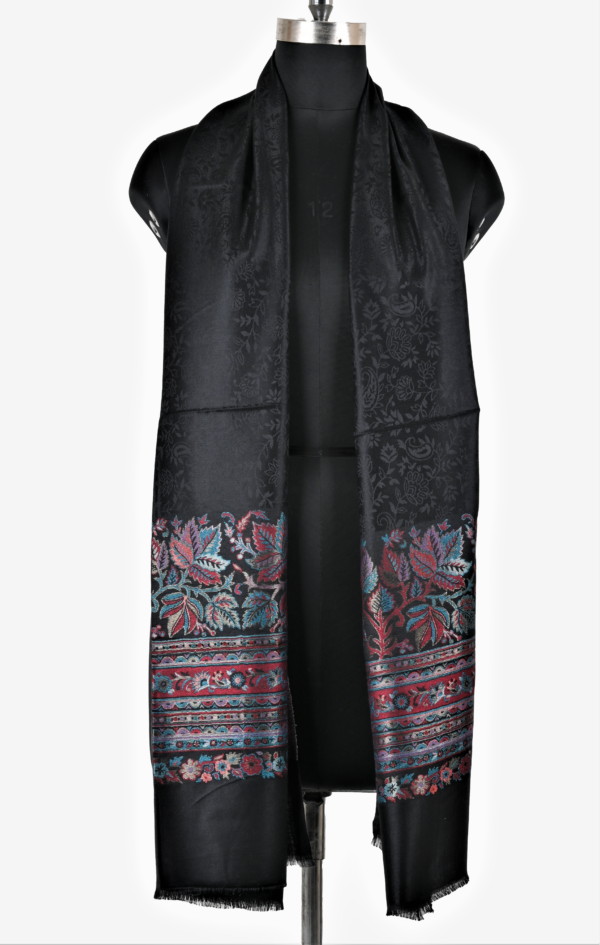 : 70 cm X 200 cm (27.5 inches X 78.7 inches) : Pashmina, Silk, Handwoven : Unisex winter scarf Care Instructions: – Dry Clean Only. Regular Steam Ironing recommended to avoid pilling. To be stored in a moisture-free environment, away from direct sunlight.