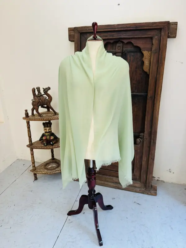 Size :- 70 cm x 200 cm , 27 inch x 78 inch Material :- 100 % Pure Pashmina Care instruction : – Dry Clean Only .