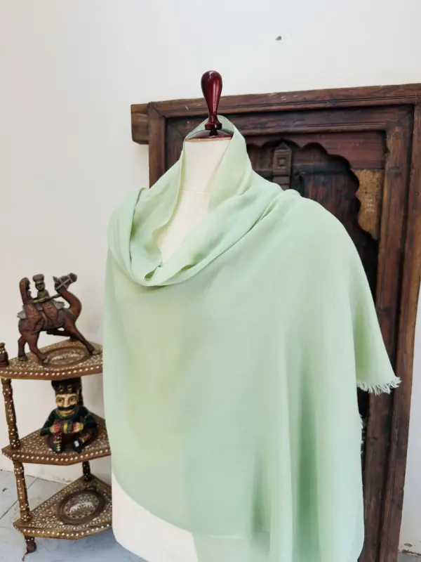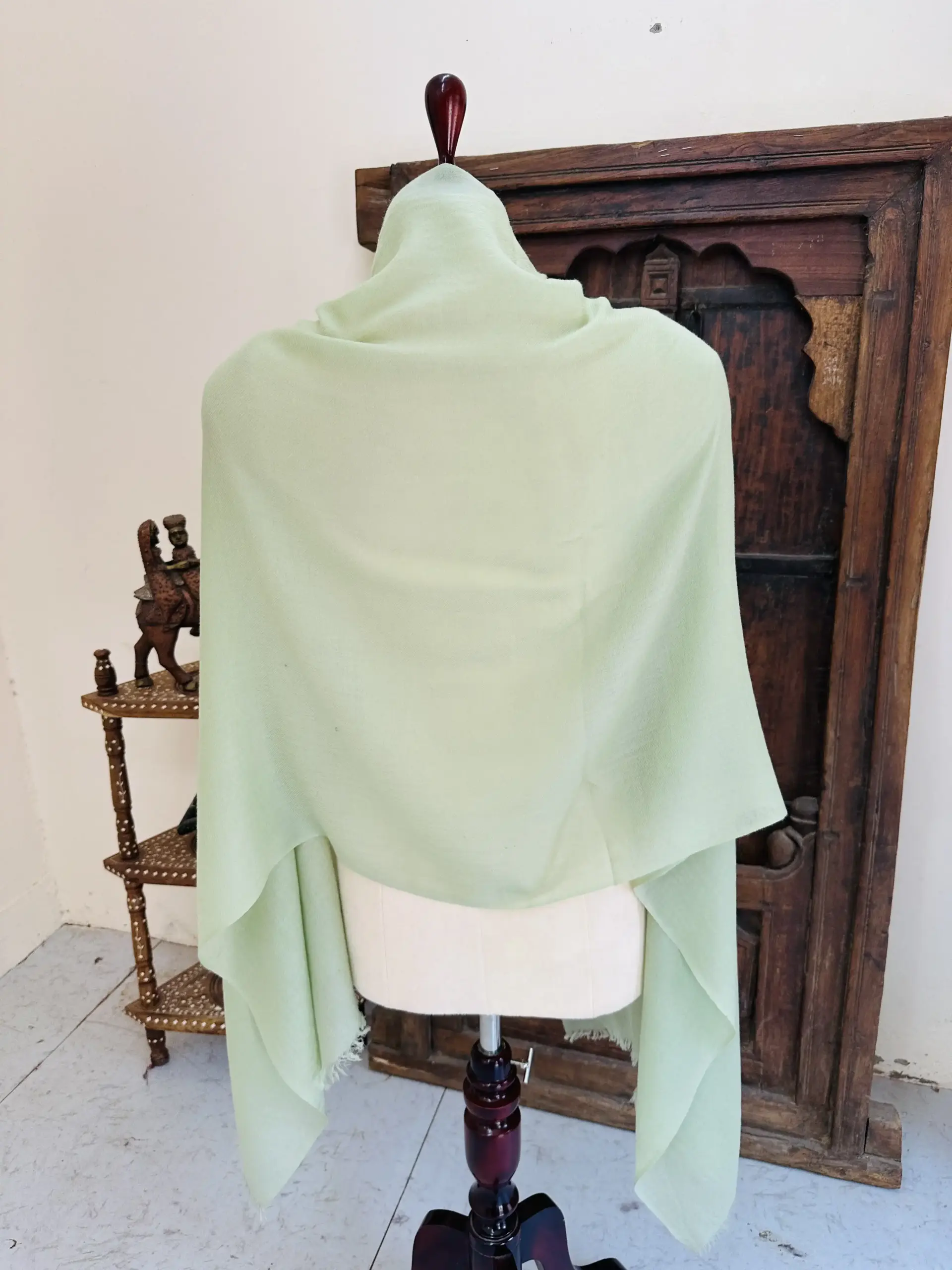This plain pashmina stole is made of 100% cashmere from Capra Hircus Goat, which is the finest Cashmere in the world from Kashmir. This luxurious, glamorous piece combined the best workmanship and made by the best traditional artisans. It took days to complete. A true border-less and elegant fashion accessory. A perfect choice for bridesmaids and wedding gifts too. Care: Dry clean recommended, iron with low temperature with cloth on top We do our best to photograph the product to show how they will appear in person, but due to the different screen resolutions, the color may vary.