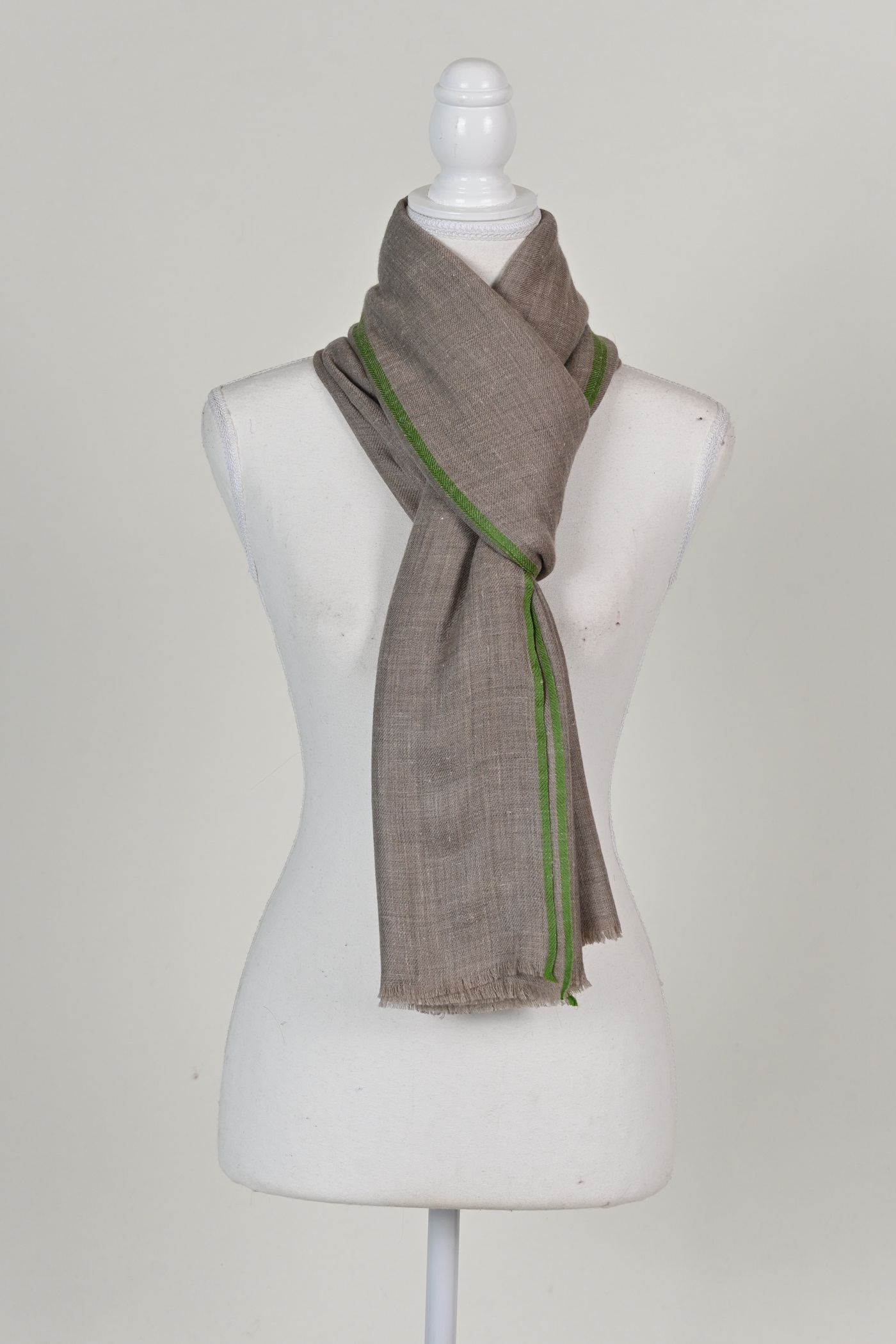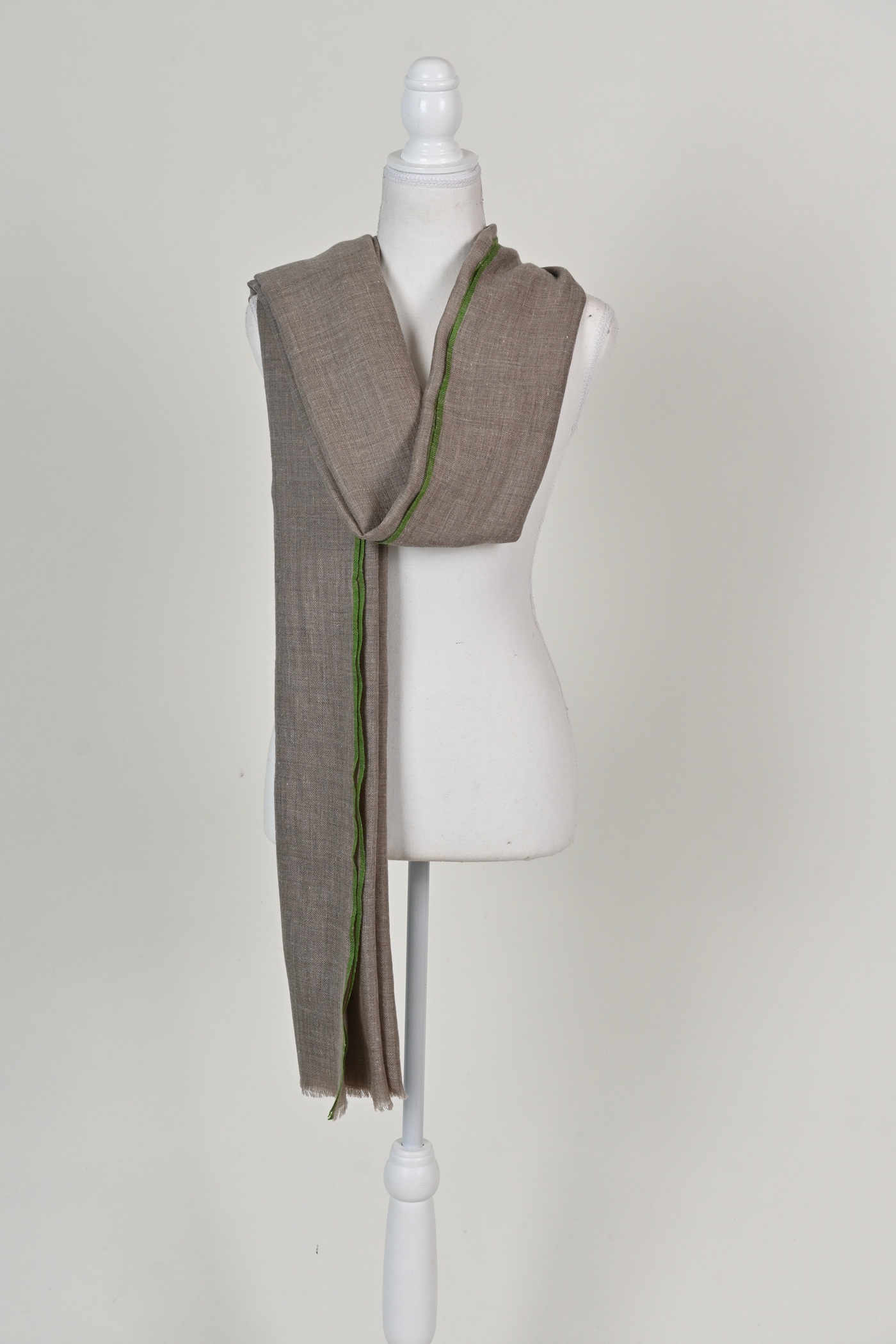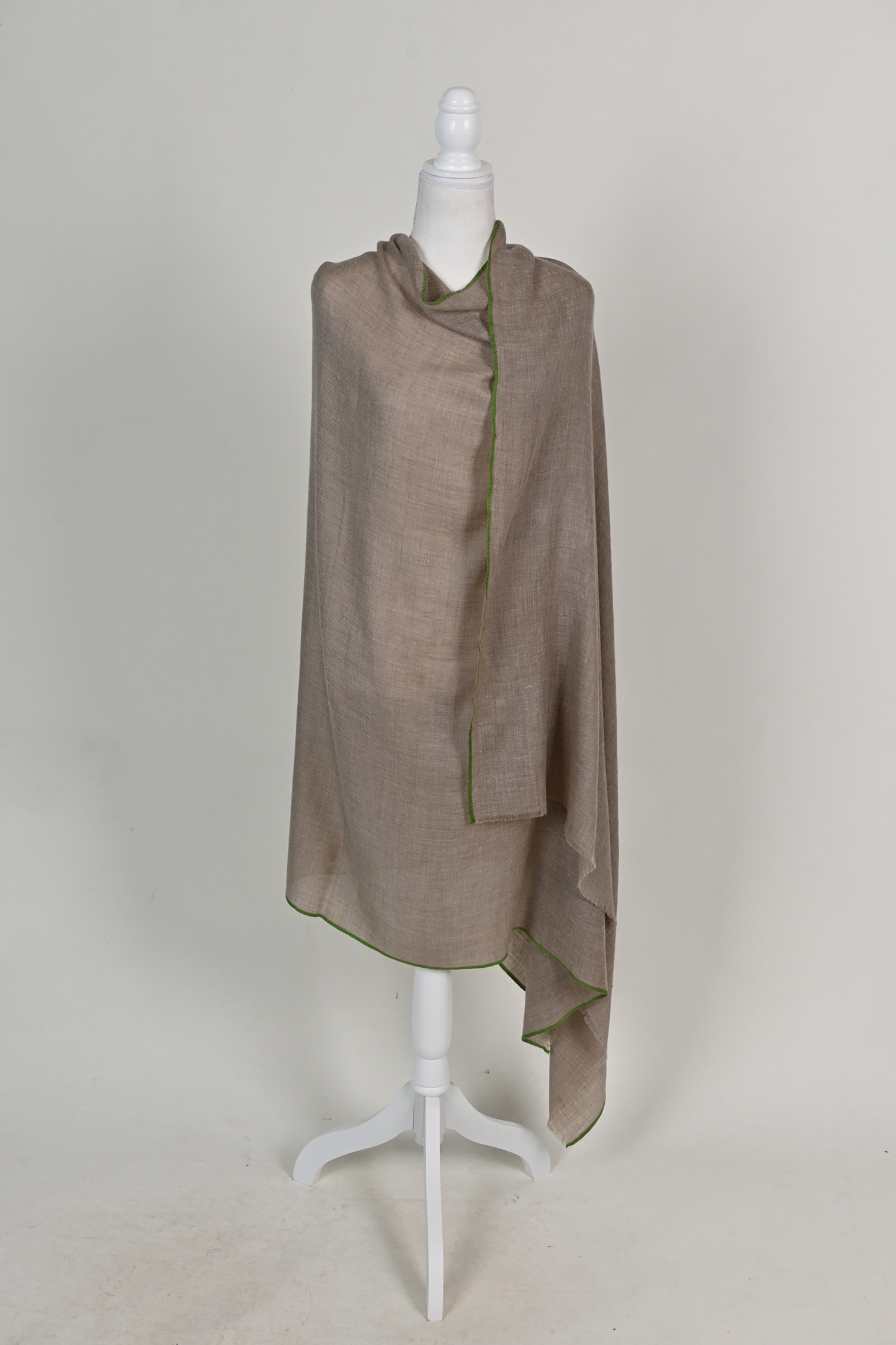 Handwoven Green Color Border Stripe Vicuna Shawl
