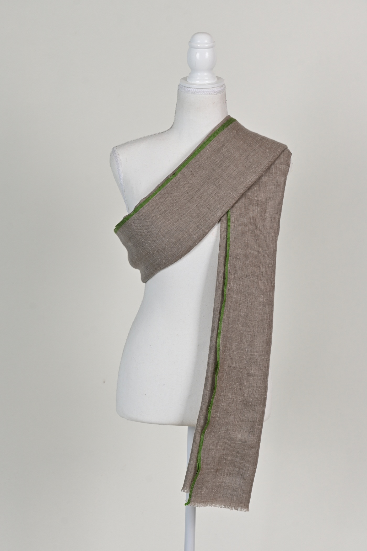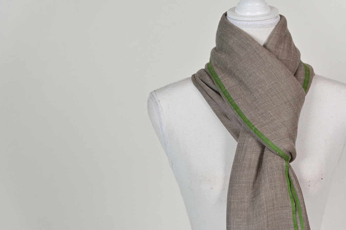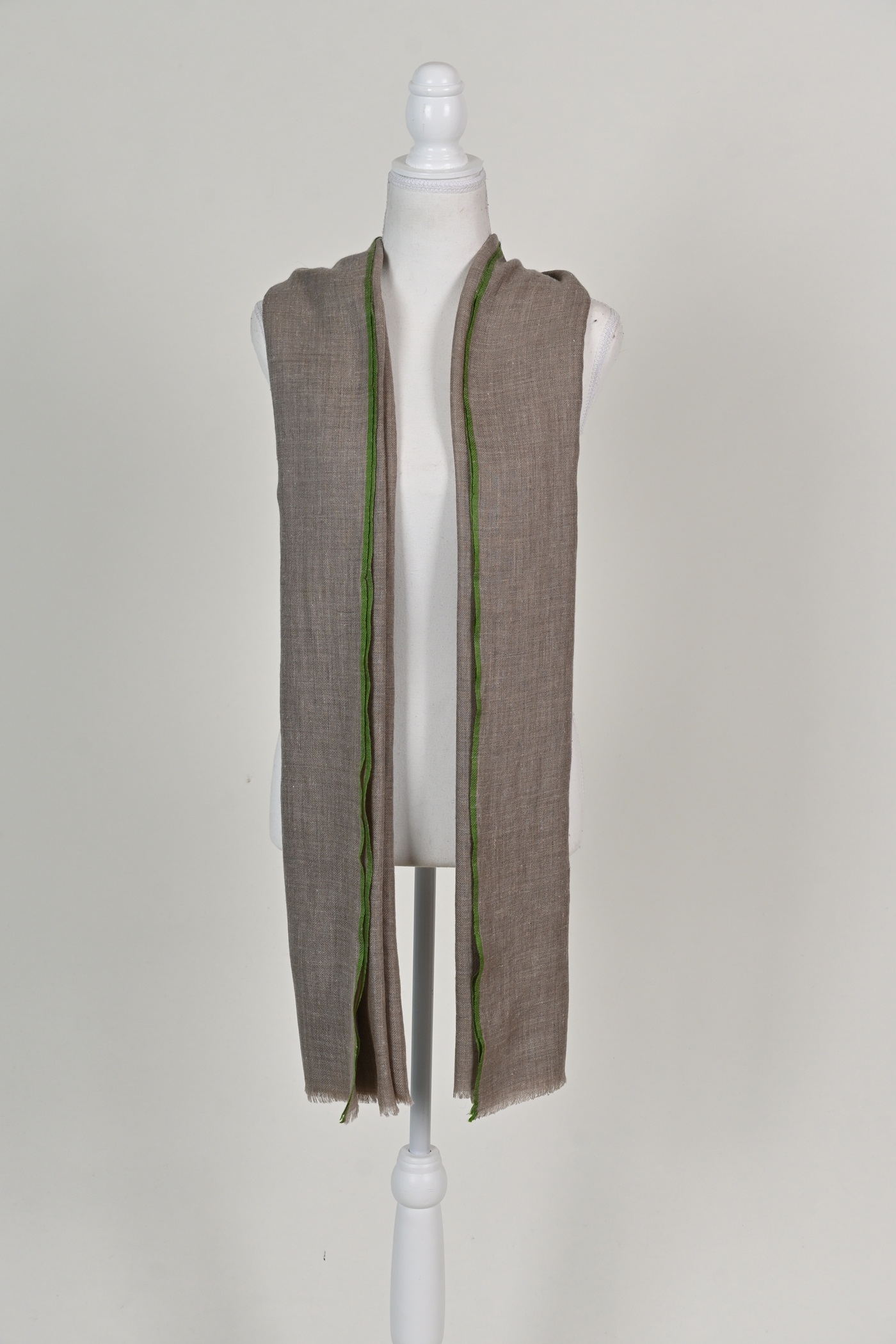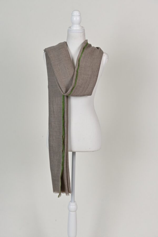 Handwoven Green Color Border Stripe Vicuna Shawl