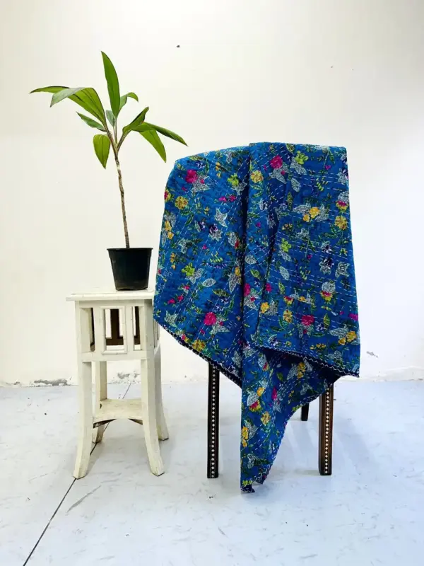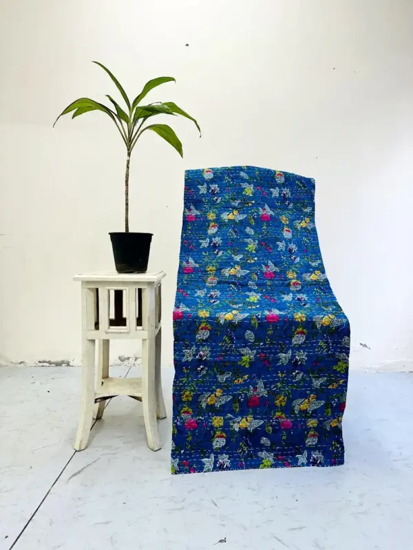 The Reverse side is completely usable clean plain colour kantha stitch throw.