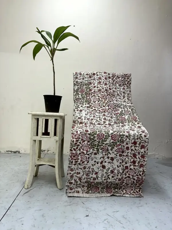 The Reverse side is completely usable clean plain colour kantha stitch throw.